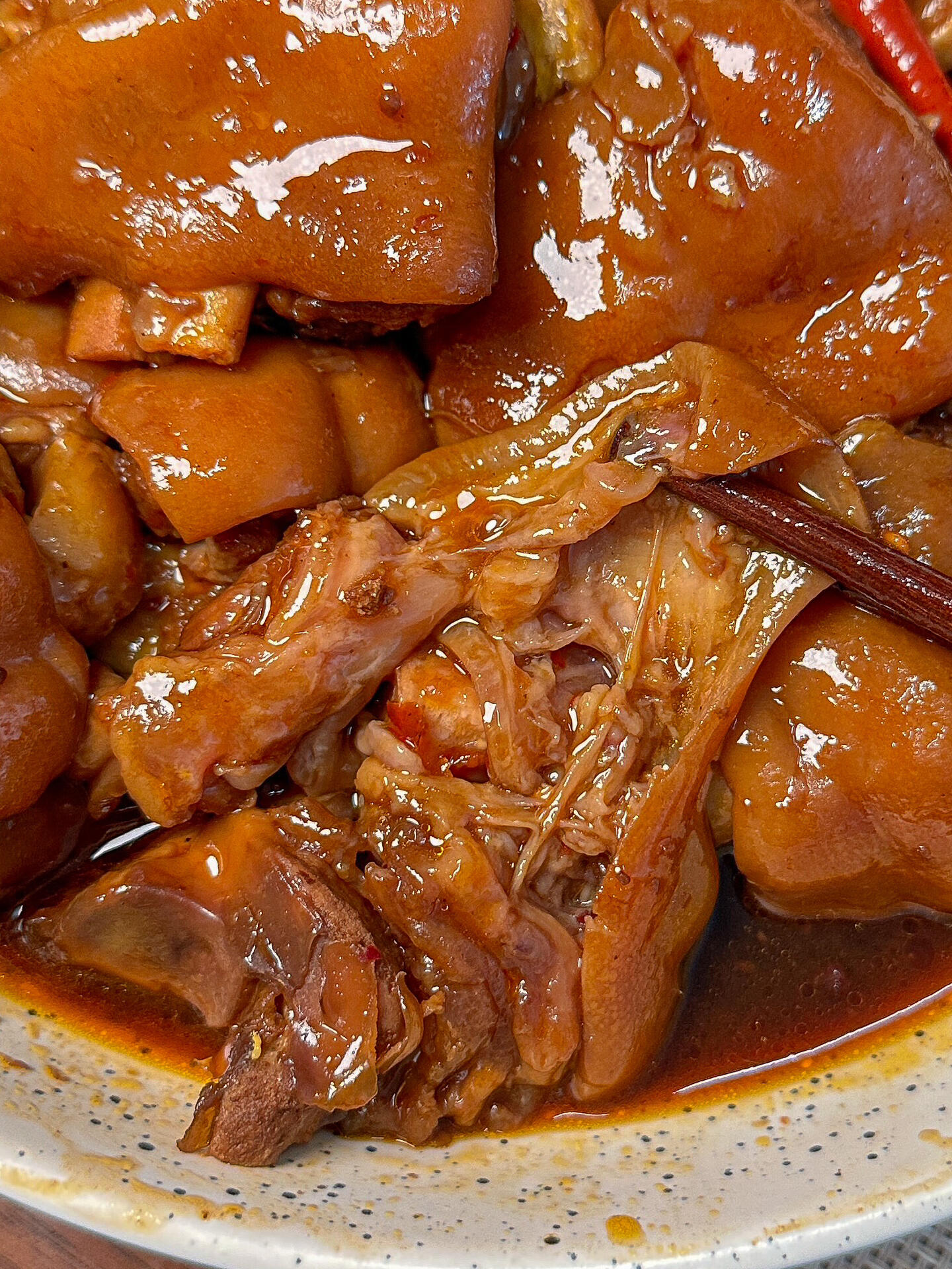 - 炖猪蹄的时间需足够长,这样才能保证猪蹄肉质软烂,容易入口。