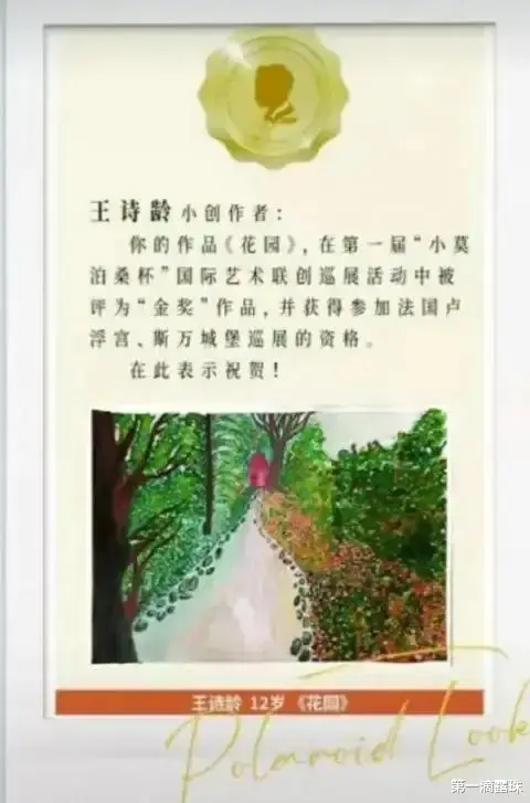 这份努力也早有了回报:2022 年王诗龄凭《花园》拿下法国 “小莫泊桑杯” 金奖,还入选卢浮宫巡展;2024 年、2025 年接连拿下英国学校的艺术奖项,如今再添国际金奖,显然是长期积累的结果。