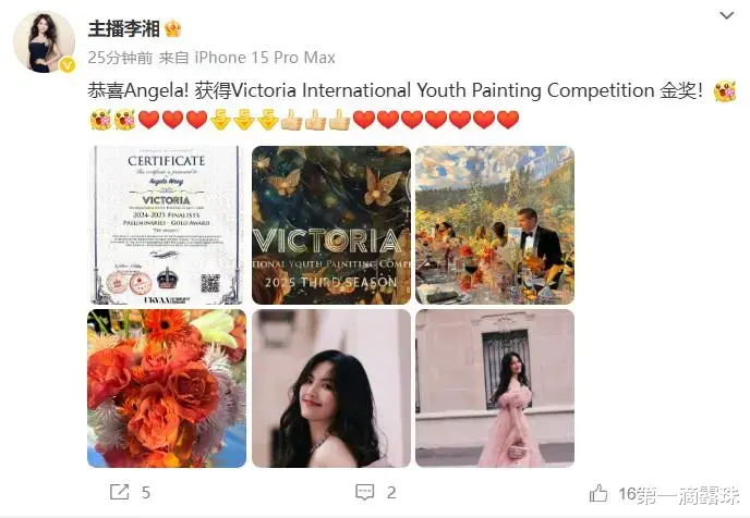 王诗龄获维多利亚国际青少年绘画大赛金奖的消息,被李湘与王岳伦用同一句 “恭喜 Angela!” 同步官宣,这份离婚后仍默契十足的育儿支持,让“星二代”艺术天赋与家庭传承的话题再次升温。