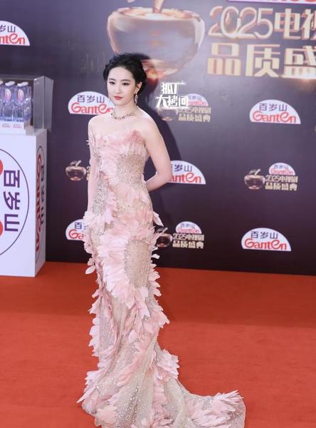 更绝的是她那份松弛感——生图被说"珠圆玉润"也不慌,照样穿抹胸裙自信亮相,这哪是摆烂?