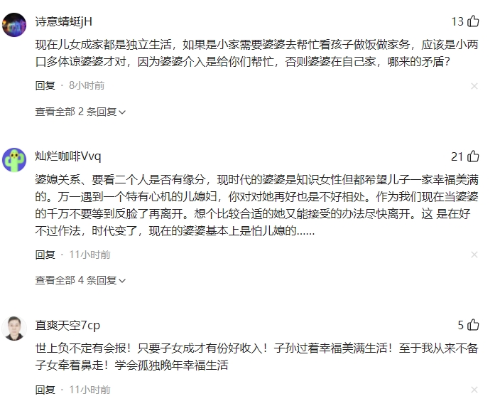 婆婆和儿媳,本就是两代人、两种性子,能走到一个屋檐下,是缘分。大家都在学,学着做对方的依靠,学着把日子过暖和。不指责、不抱怨,多看对方的好,家里自然就和气了。