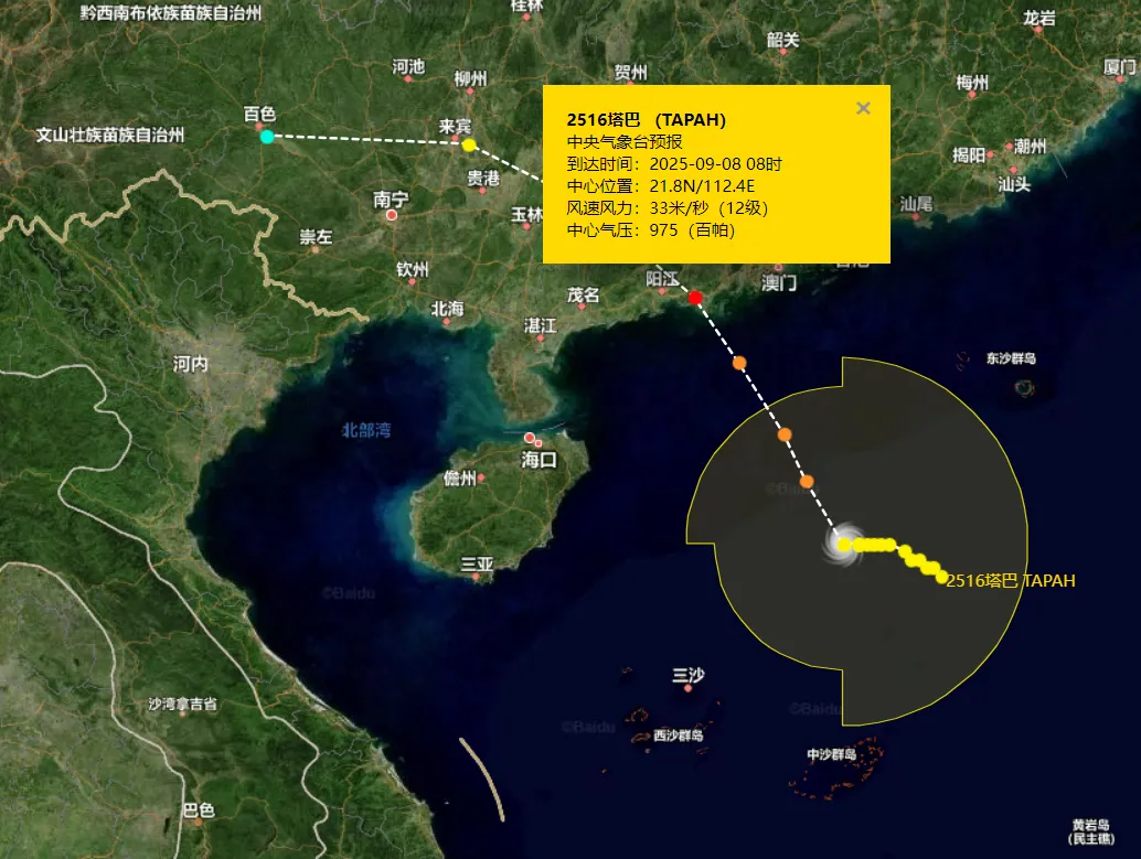加上本身北侧的高压系统稳定,这就是其主要的原因,然而呢?在南海土台风塔巴发展出来之后,就进入到了爆发期状态,我国预计巅峰达到12级,风速为33m/s,并且在8日凌晨到中午在广东珠海至湛江一带沿海登陆,这相对于此前的时间来说,晚了一点,这说明了在海区的发展时间长了,所以,给出爆发的趋势完全可以理解,近海区域的温度也高,条件是有的。