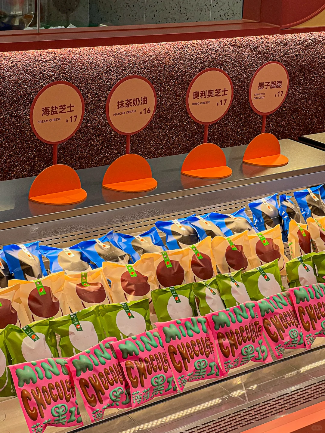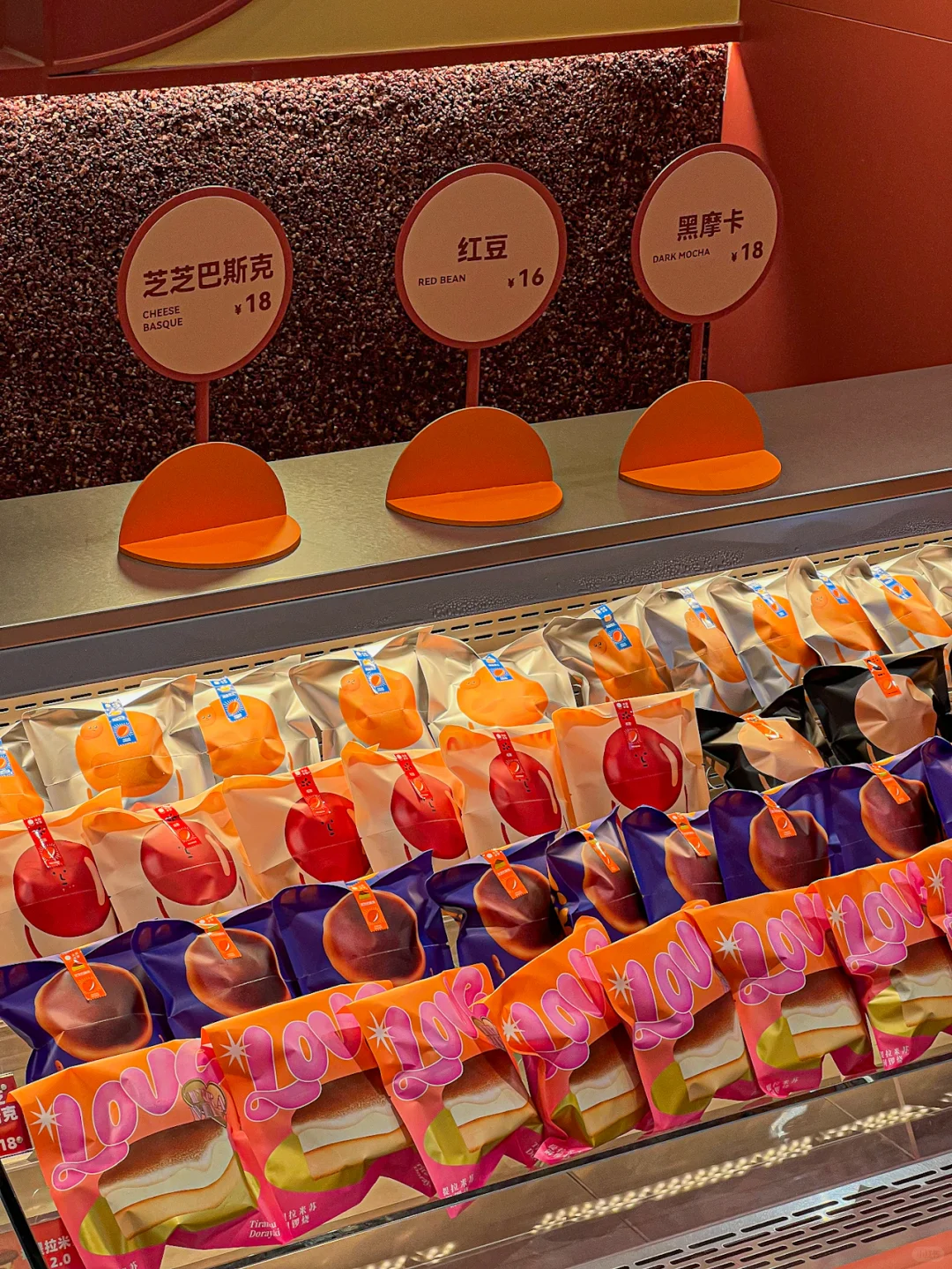 一个货架都是不同口味的铜锣烧,摩卡、薄荷黑巧味真的吃不腻好好吃
