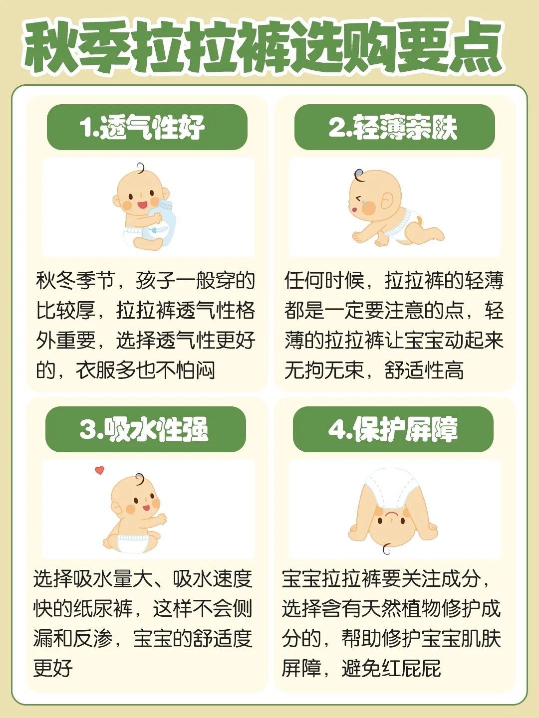 迈入秋季之后天气逐渐干燥,又到了换季的时节,宝宝的皮肤在这时候是很娇嫩的呀,秋冬衣物加多,如果日常穿的纸尿裤不透气的话反而会很闷!这时候拉拉裤的重要性就体现出来了