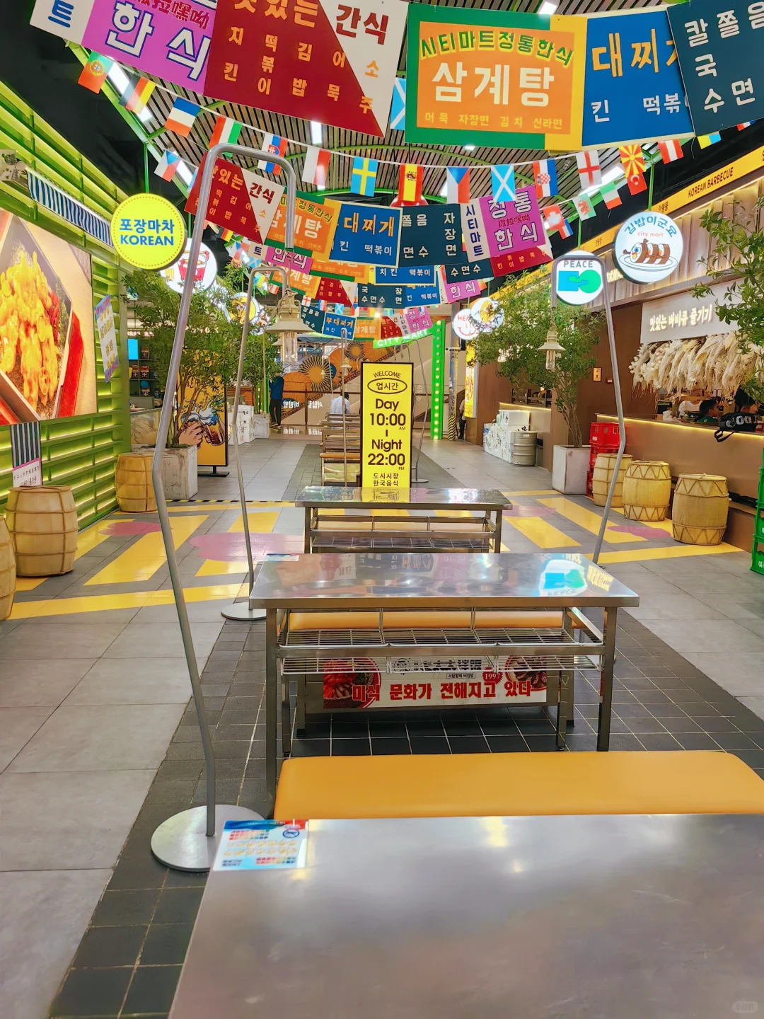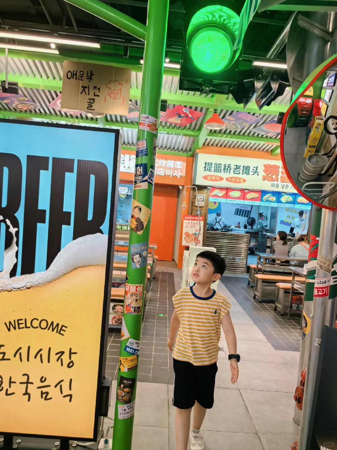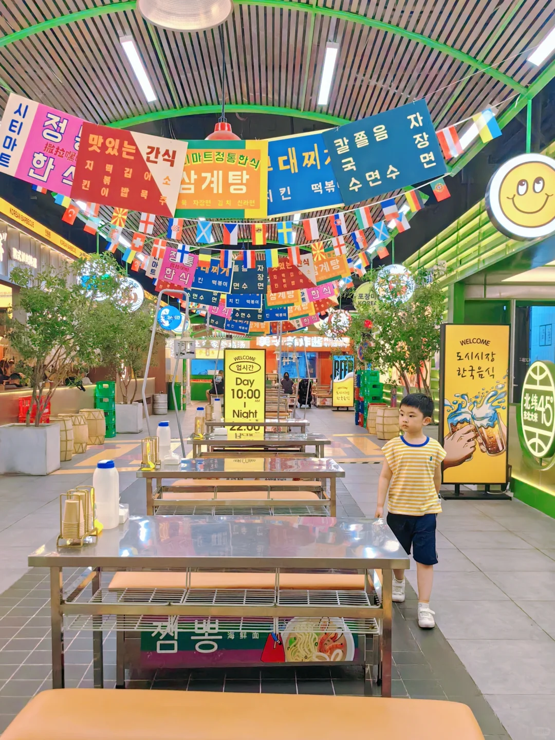 🥹城市集市怎么一改一个不吱声。周末来逛太阳宫,印象中5楼是大漠风格,这次走了一圈没看到,还以为跑错楼层了 💡结果发现,改成韩国街啦,你别说,还真别说,韩味挺浓,连服务员的服饰也韩风。 就是连提篮桥葱油饼也变成韩式招牌啦 里面主要是韩式的餐饮店,但是街道布置还贴上了韩剧海报、可可爱爱的涂鸦、红绿灯街道。 就是一秒来到阿尼阿赛哟的感觉。 🧩🧩🐻 逛街逛累了,拿出准备的🐻BEAR熊小点水果卷 零食,迷你爪有个小爪爪在上面,新鲜水果制成,酸甜可口,夏天热,娃没胃口,也能炫一包,没有额外添加的糖🧊️🧂,高纤维不给肚肚添负担。 水果卷像我们小时候吃的零食,不同的是全来自于水果🍎🫐🍓制成,软糯可口的,配料表除了水果没有其它了,内含英文动物游戏卡片,好吃好玩。 🥤🧋🍨🥞🍜🍝🍛🍱🫕🧆️ 城市集市·韩国街 ☀太阳宫5F