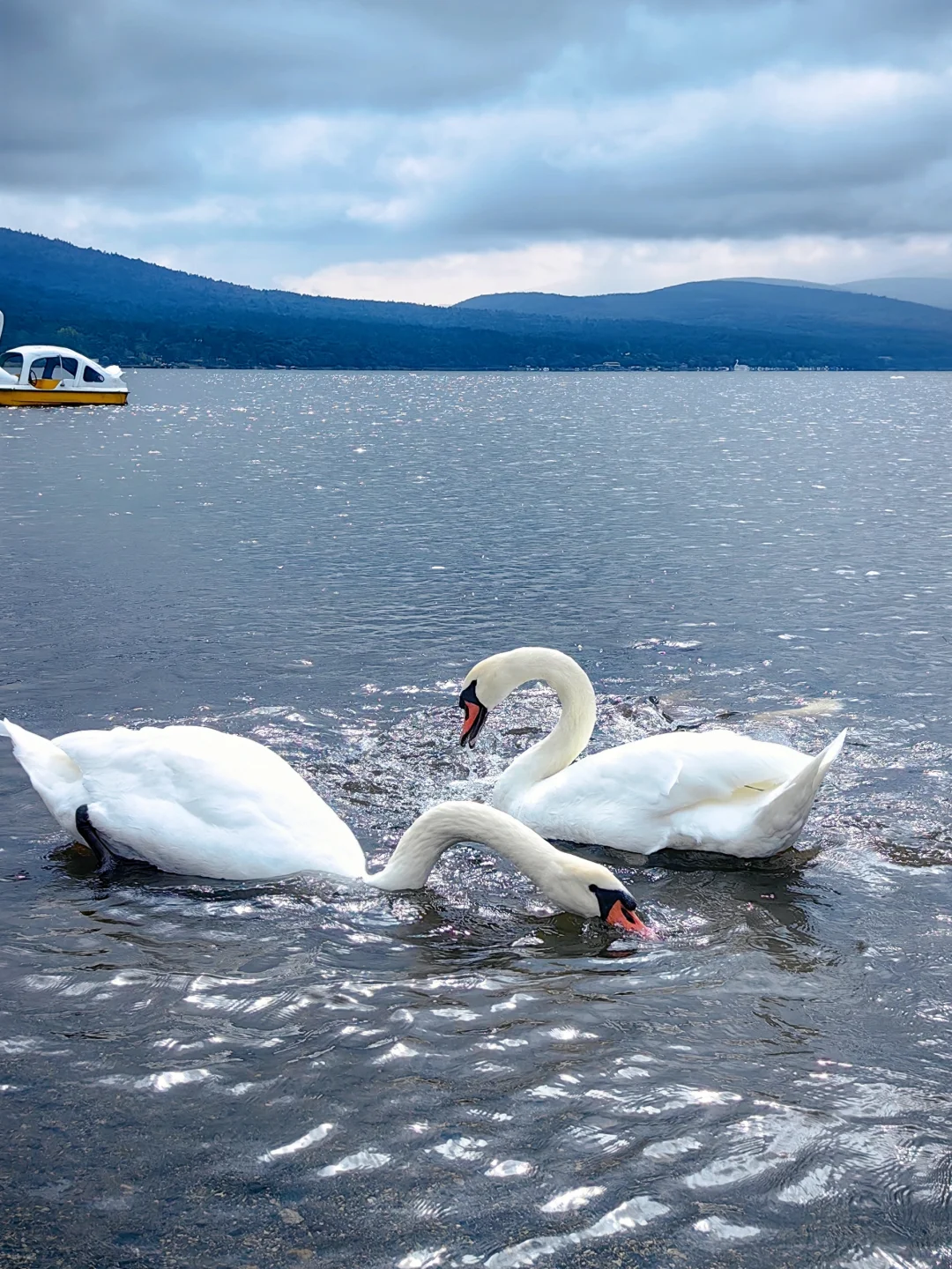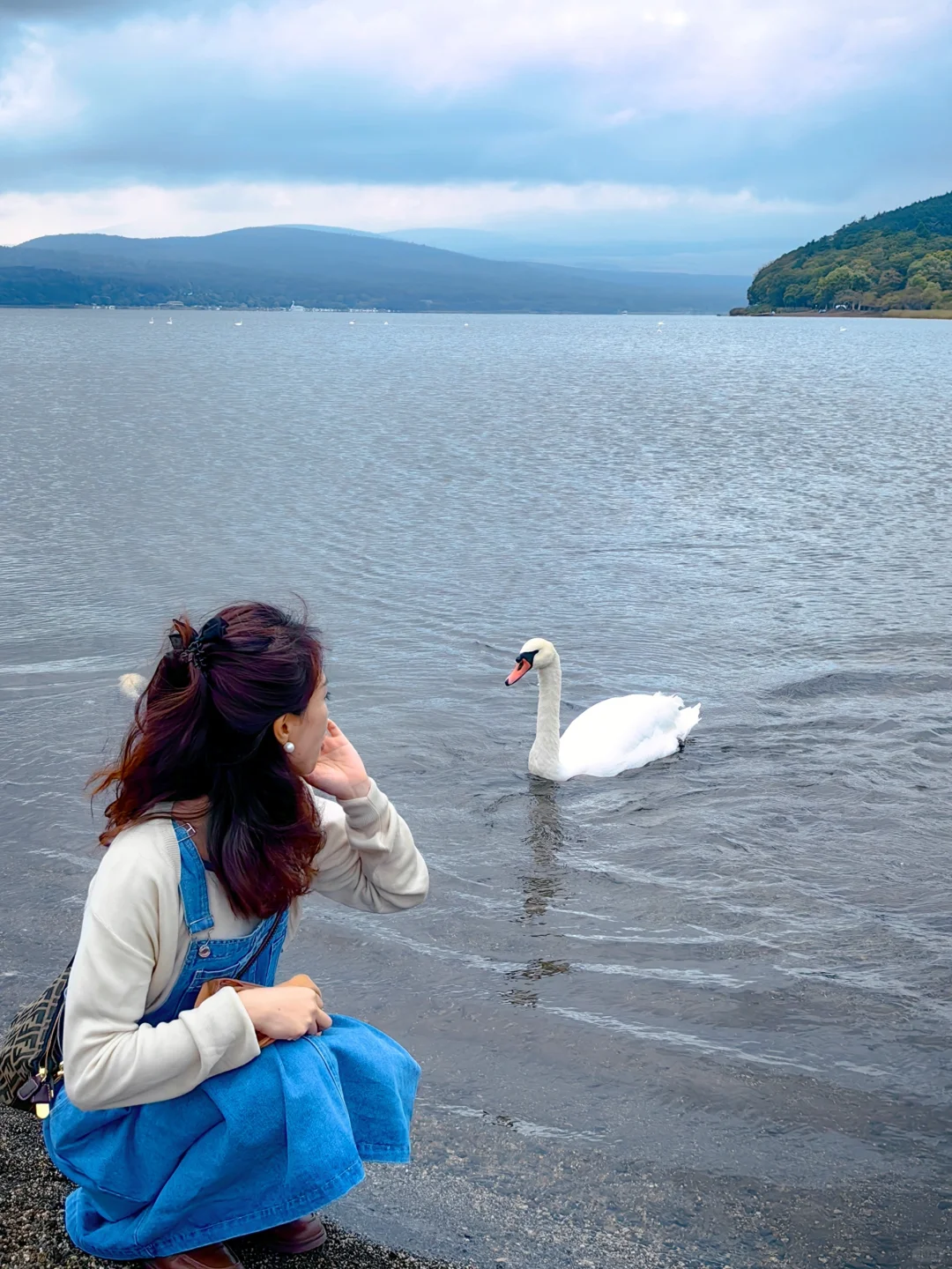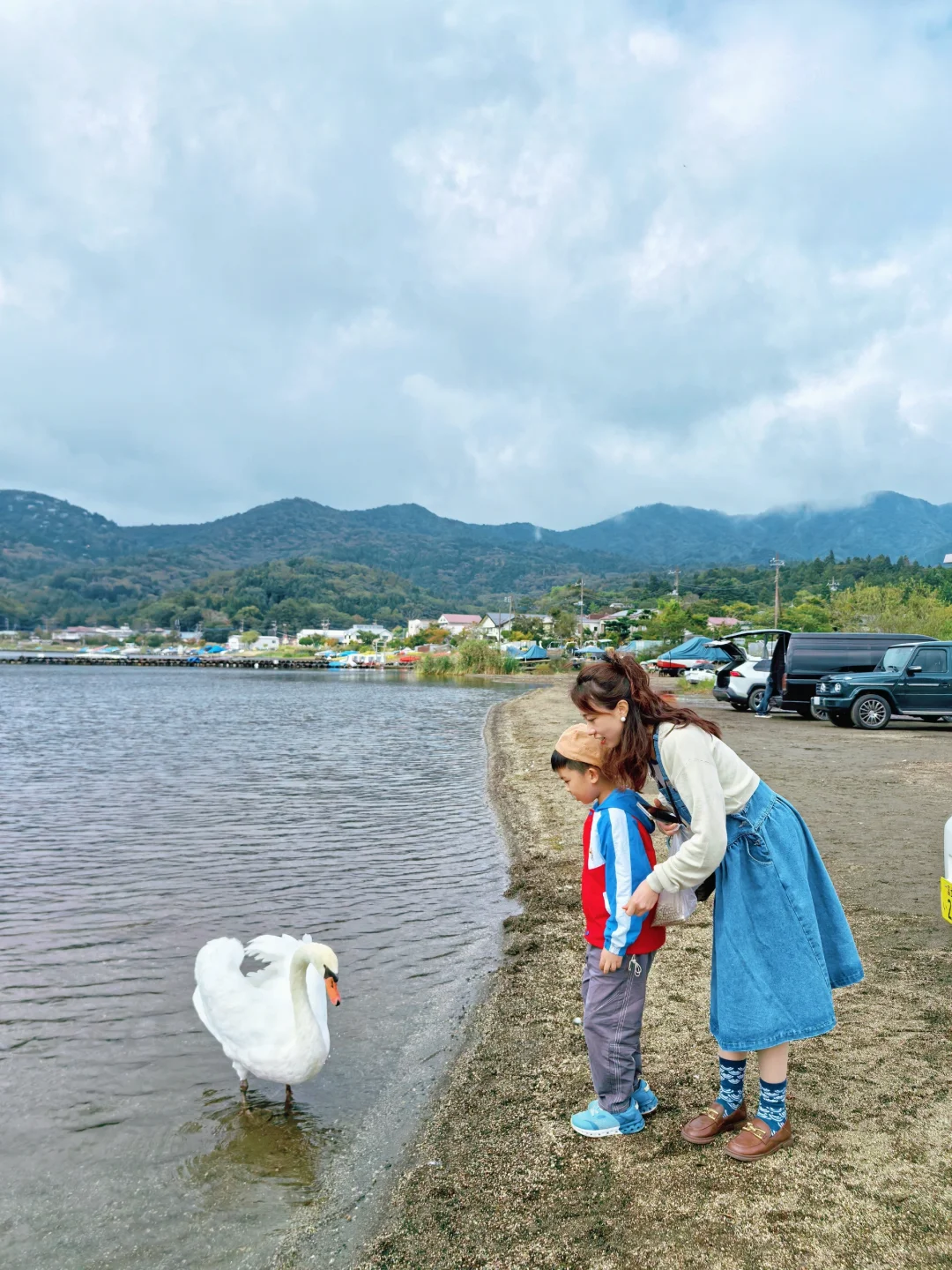 💡天鹅🦢点,有个老爷爷250yen鱼料,好大一袋,引得🦢也来了。