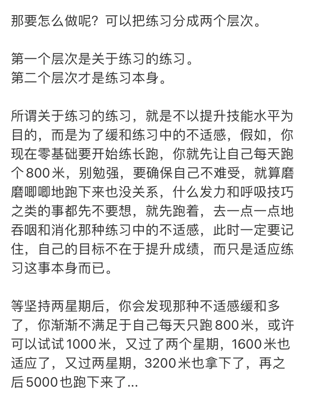 就好比连跳绳,大学毕业都6、7年了早就忘记了怎么跳绳,但是从100个开始起跳,两三年后,15分钟里跳2000个真不是问题