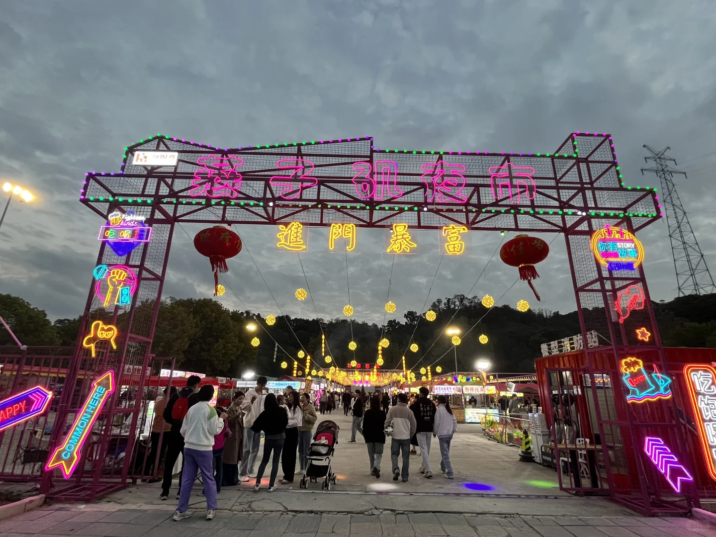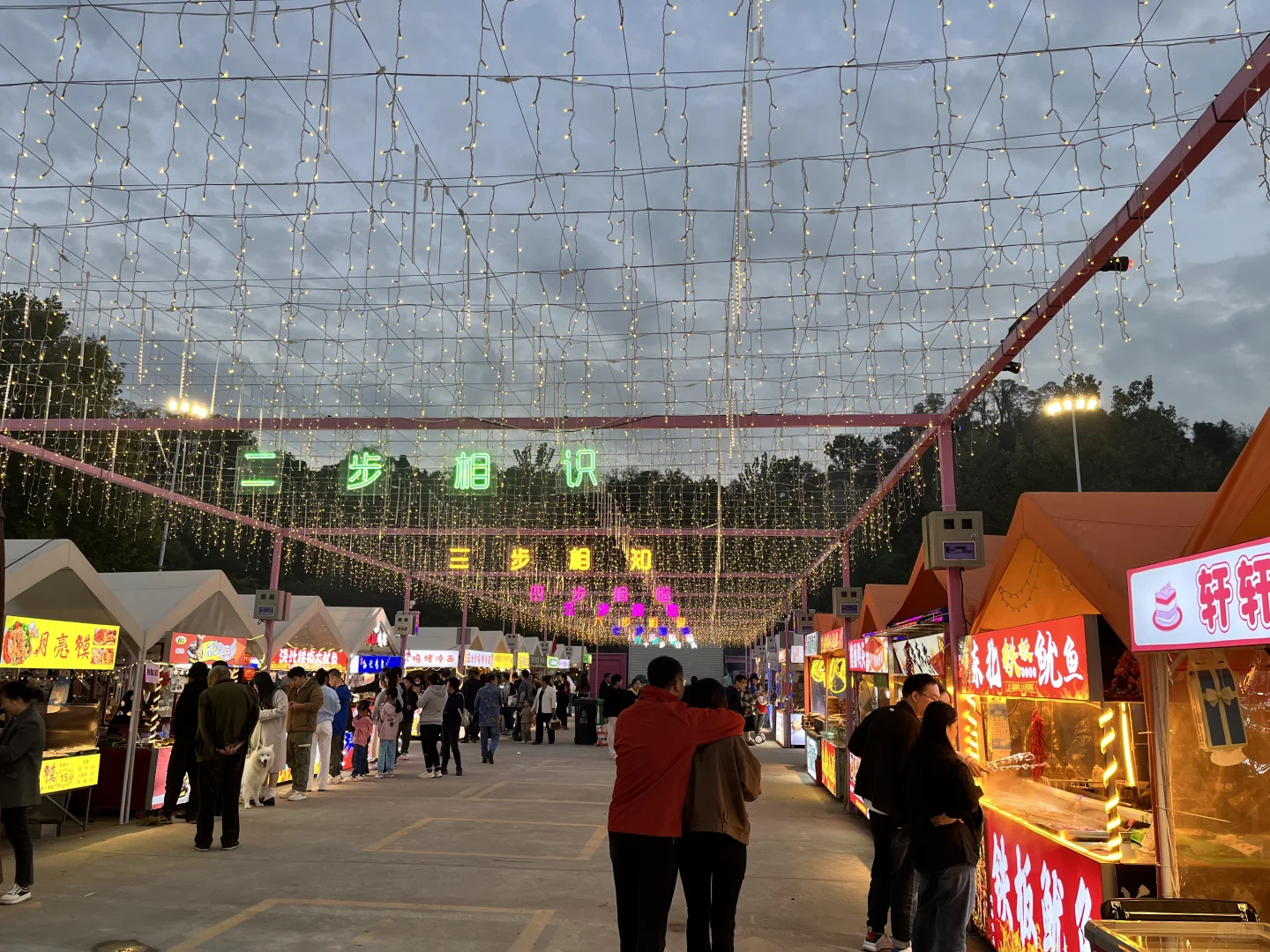 [向右R]夜市门头做的Blingbling⭐⭐⭐,业态以餐饮小吃尤其是烧烤为主,另外就是套圈了;