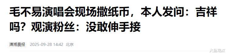 参考资料:潇湘晨报2025-09-28《毛不易演唱会现场撒纸币,本人发问:吉祥吗?观演粉丝:没敢伸手接》