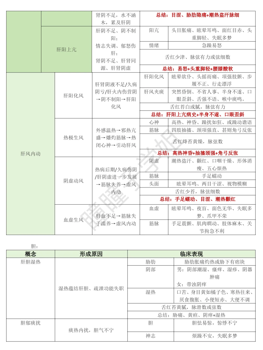 最后一个板块——肝与胆来啦~ 至此中基脏腑病机➕中诊脏腑辩证就整理完了 主页全部都有,大家自取 —— 来不及背歌诀的宝,这几页纸理解透,一样拿高分 大家撑住,加油