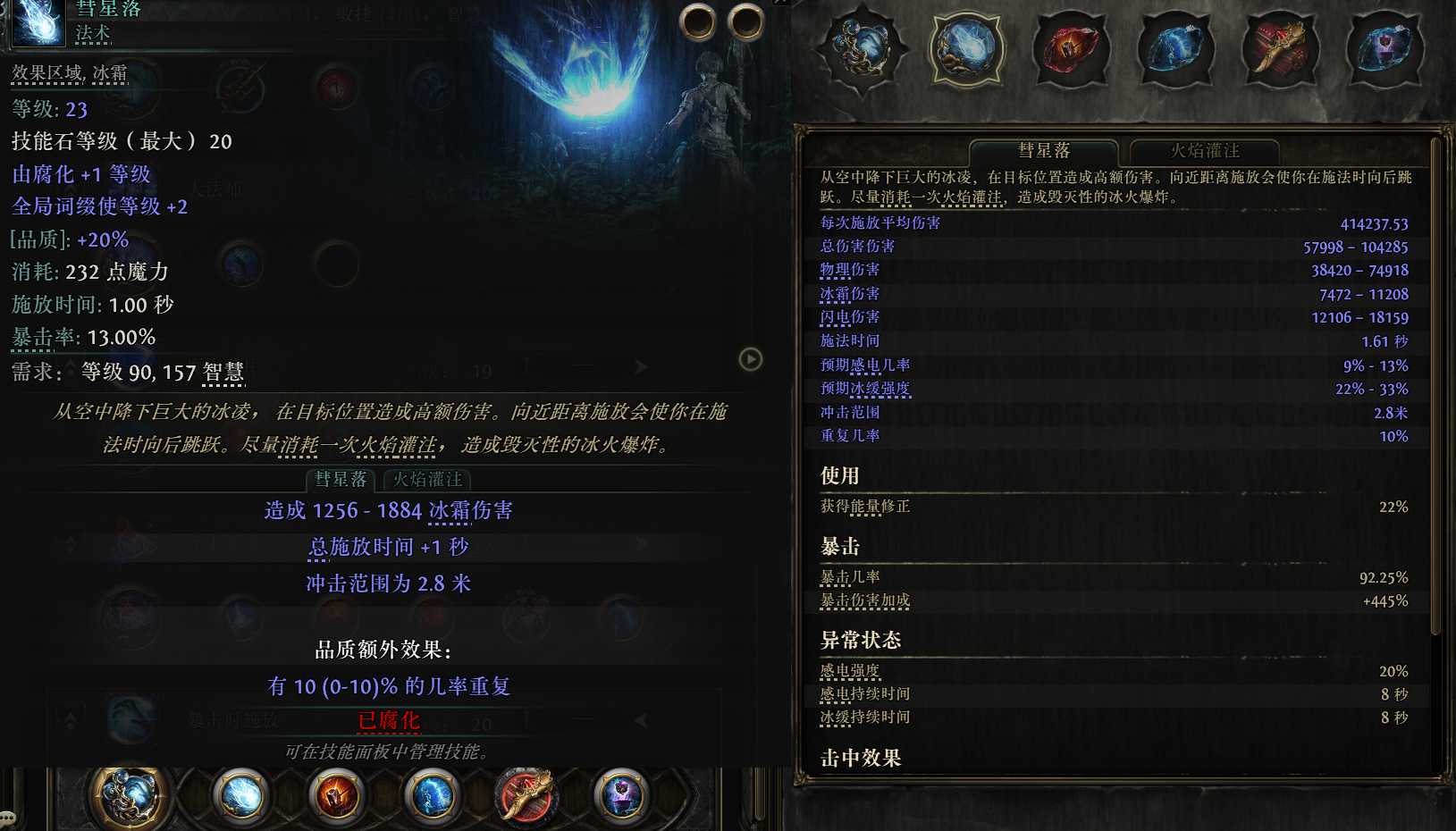 暴击施法挂彗星,技能等级提升伤害巨大,23级即可41万面板,实际打BOSS秒伤随便千万。