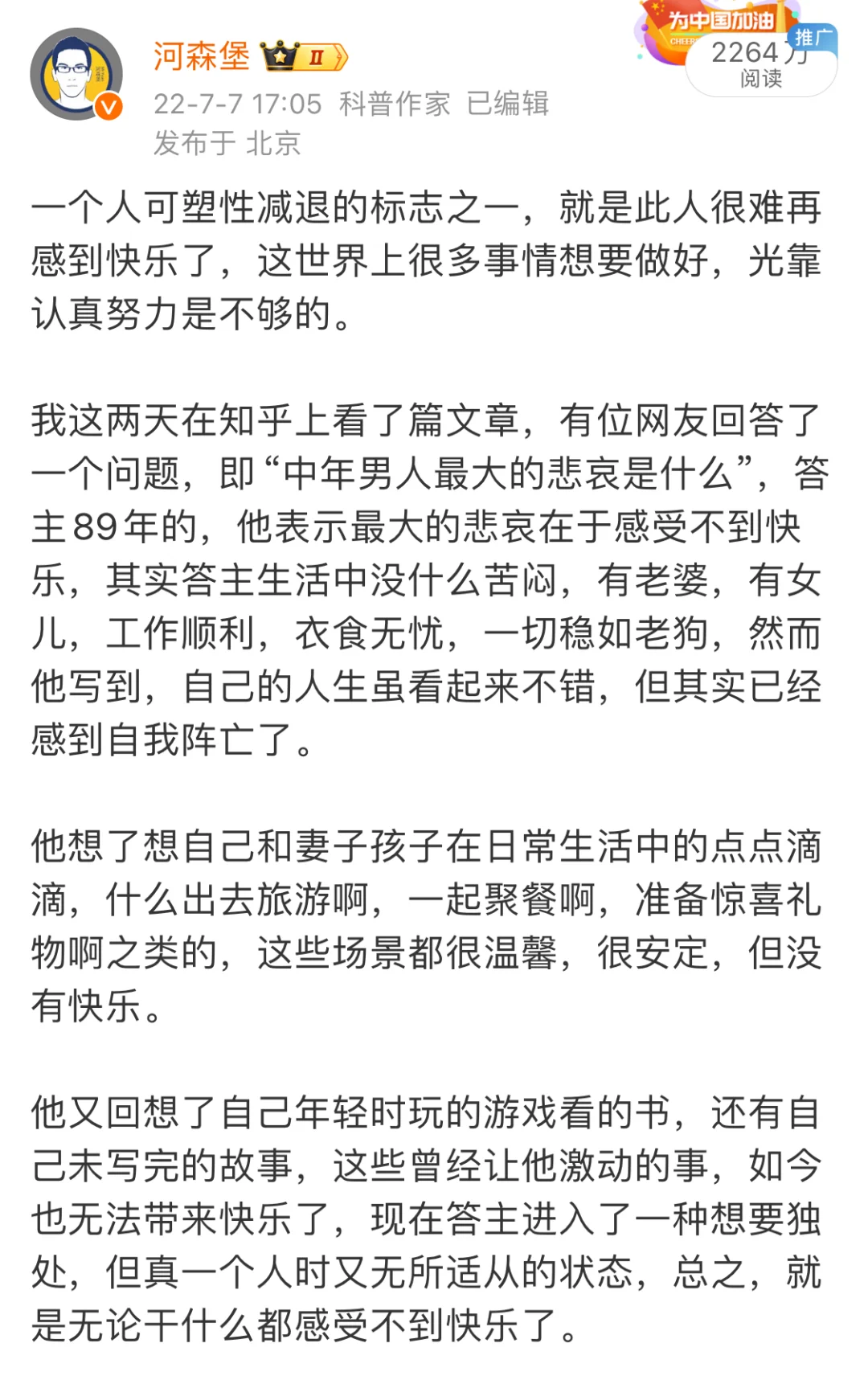 可能他的生活太平静幸福,感受快乐的阈值上升了
