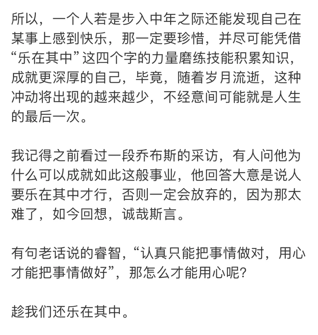 人的一生中,做事时能有乐在其中的体验其实非常难得,有这种机会一定要把握住,也许某一次就是人生中的最后一次