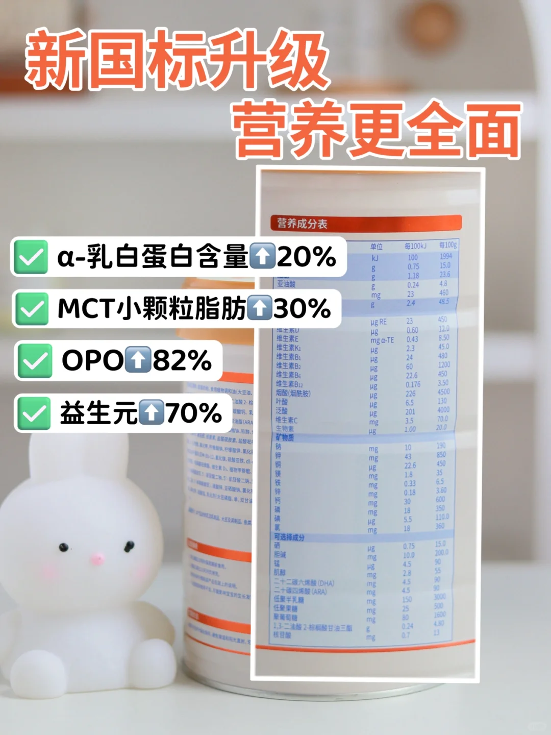 再加上二微小颗粒脂肪:MCT和OPO,MCT小颗粒脂肪可以给孩子快速供能,亲和宝宝肚肚🔆,OPO可以在帮助宝宝更好吸收钙和脂肪营养,同时还能解决恩恩困难