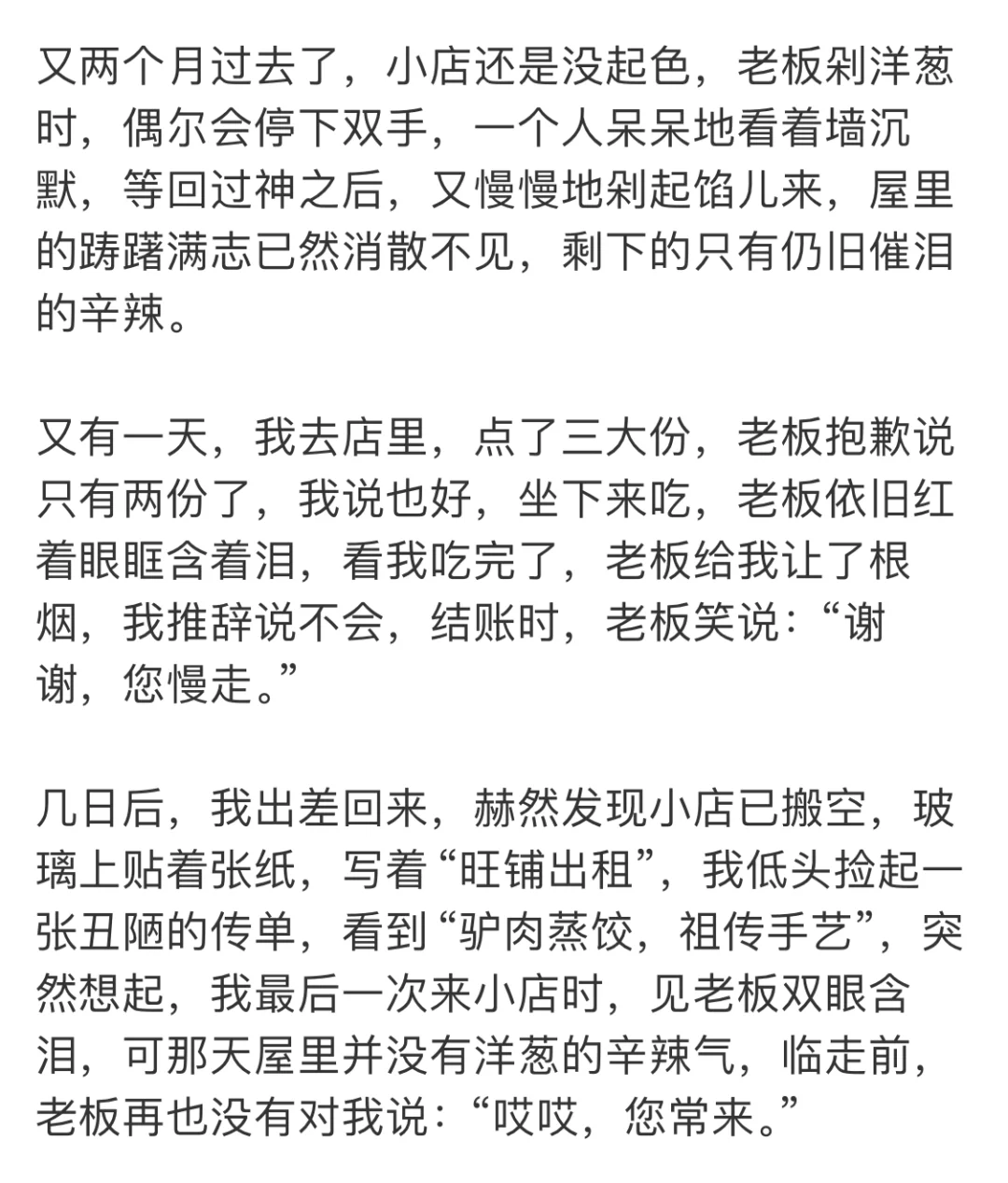 楼下的面馆也关门了,很好吃,但只开了4个月,老板说做着太没劲了