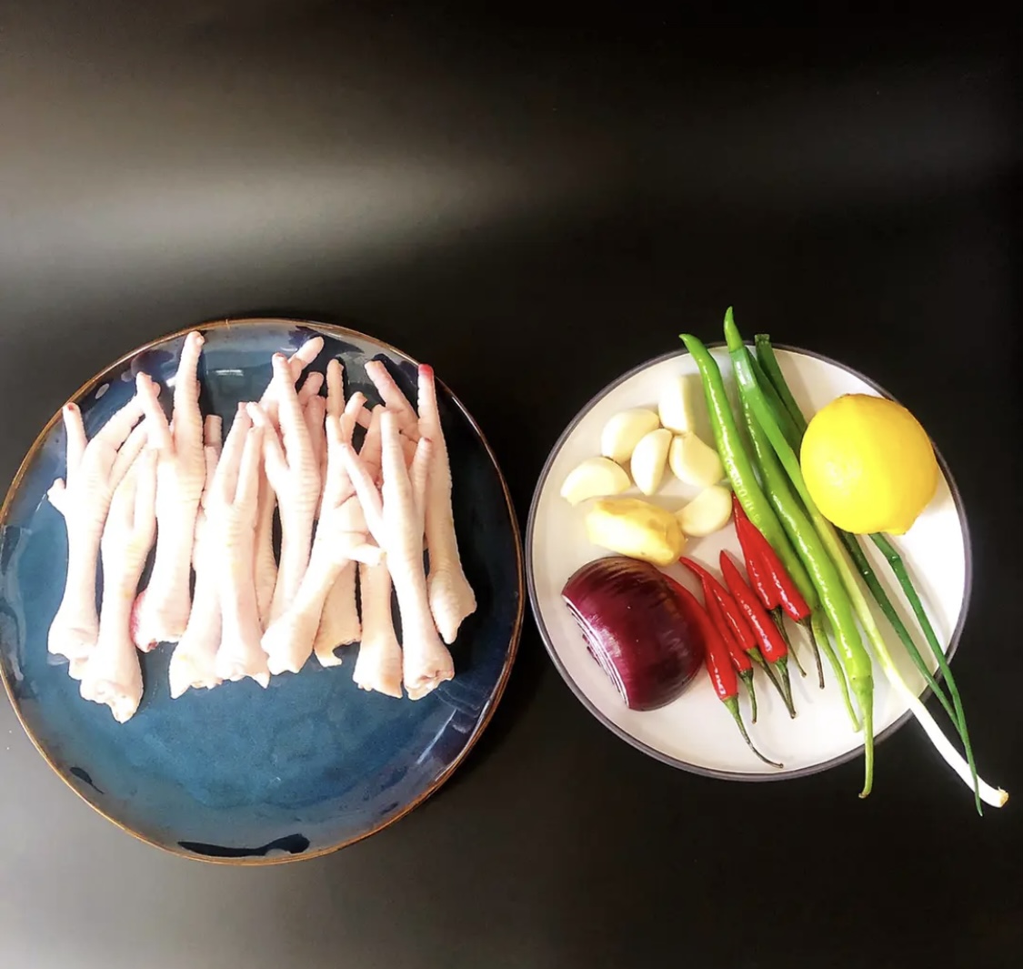 鸡爪捞出冷水冲洗干净,放在凉白开里浸泡(加冰块口感会更有嚼劲)