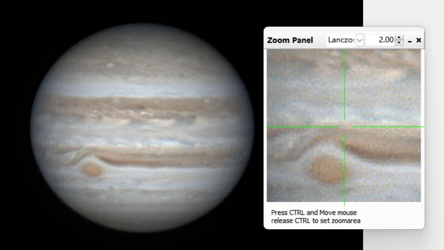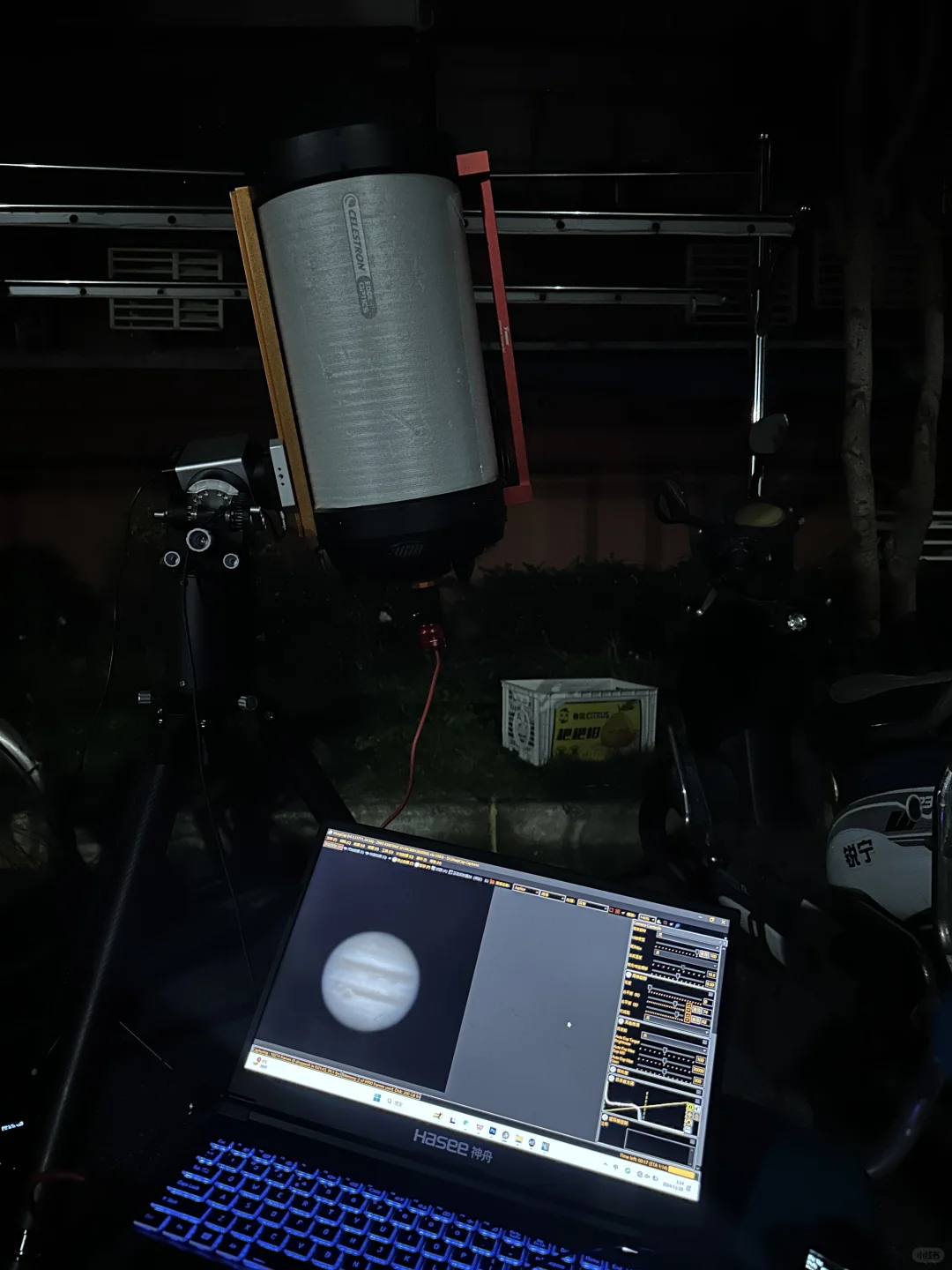 11.28 凌晨拍摄的木星大红斑,视宁度不是很好。累计拍摄40分钟,2分钟12000帧一段,共20段,选择最佳4段堆栈。 拍摄设备:星特朗C925HD,Zwo asi676mc。 拍摄参数:曝光10ms,12000帧 x 16%堆栈 x4修自转。