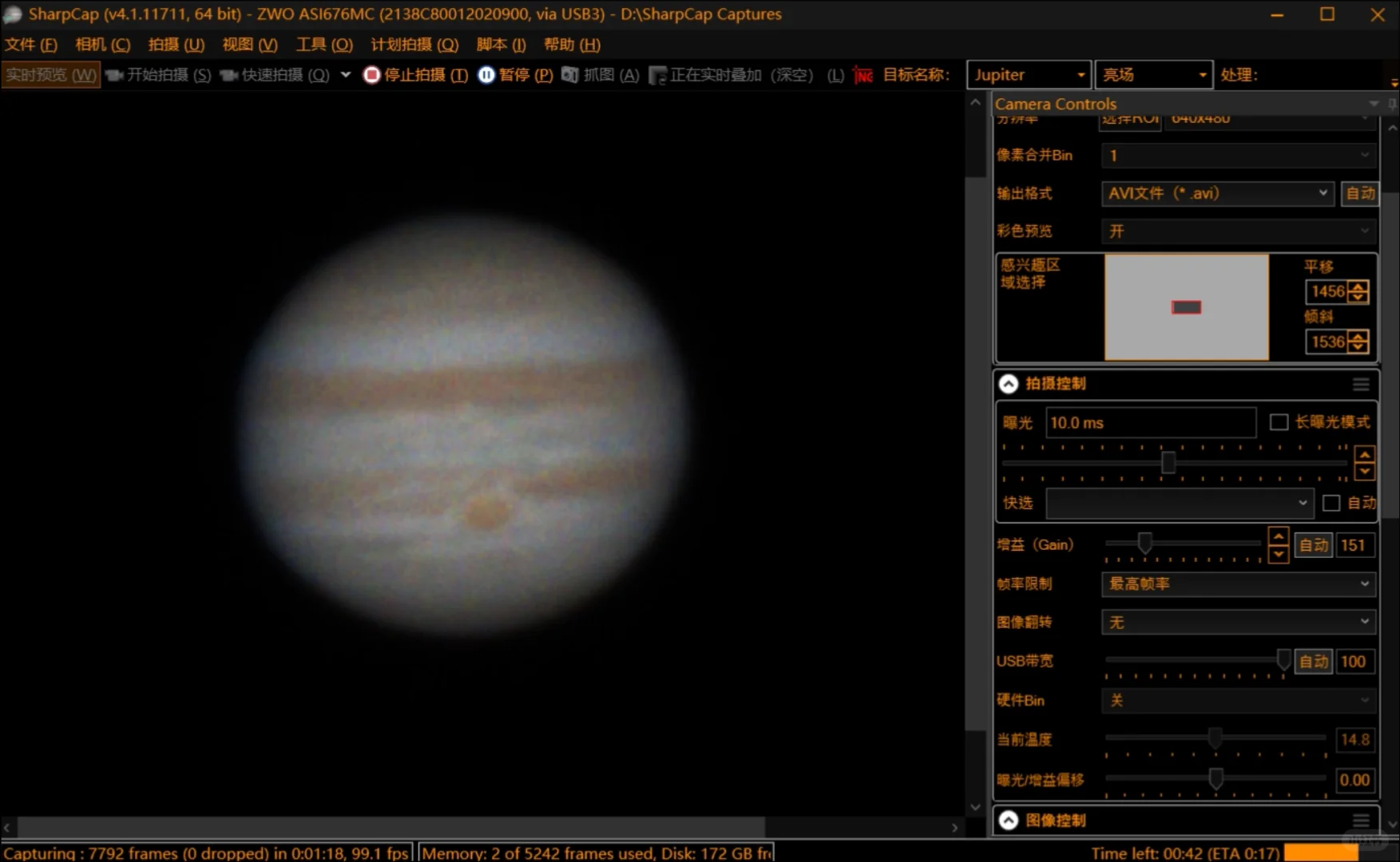 拍摄参数:曝光12ms,10000帧 x 15%堆栈 x 3段修自转。