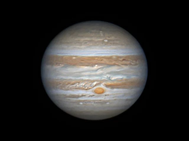 今年的木星冲日发生在2024.12.08. 04:00,算了下大红斑时间,选择在午夜刚过0点的时候拍摄,此时木星刚翻过中天,并且大红斑居中,这个足有2个地球大的风暴太迷人了。