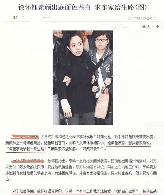 2007年,徐怀钰宣布复出歌坛,并发行了一张新专辑,但市场反响平平。之后,她签约了享鸿娱乐,本以为可以借此机会重新起航,却没想到卷入了合约纠纷。公司指责她不履行合约,要求巨额赔偿。而徐怀钰则声称公司逼迫她陪酒,因此选择离开。双方对簿公堂,这场官司让徐怀钰的经济状况雪上加霜,最困难的时候,她身上的积蓄只有两千元,甚至要靠歌迷的帮助才能度日。