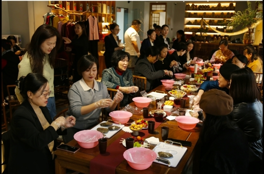 在开蚌取珍珠环节,现场更是一片欢声笑语,将活动推向了又一个高潮。随着蚌壳缓缓打开,一颗颗圆润的珍珠映入眼帘,随后在专业老师的指导下,将珍珠制作成精美的饰品。大家开心交流着开蚌技巧,专注地挑选配件,分享自己的创意,力求让珍珠饰品更具独特性。活动现场互动频繁,在享受动手乐趣的同时,也增进了彼此间的情谊,温馨与欢乐的氛围弥漫在每一个角落。