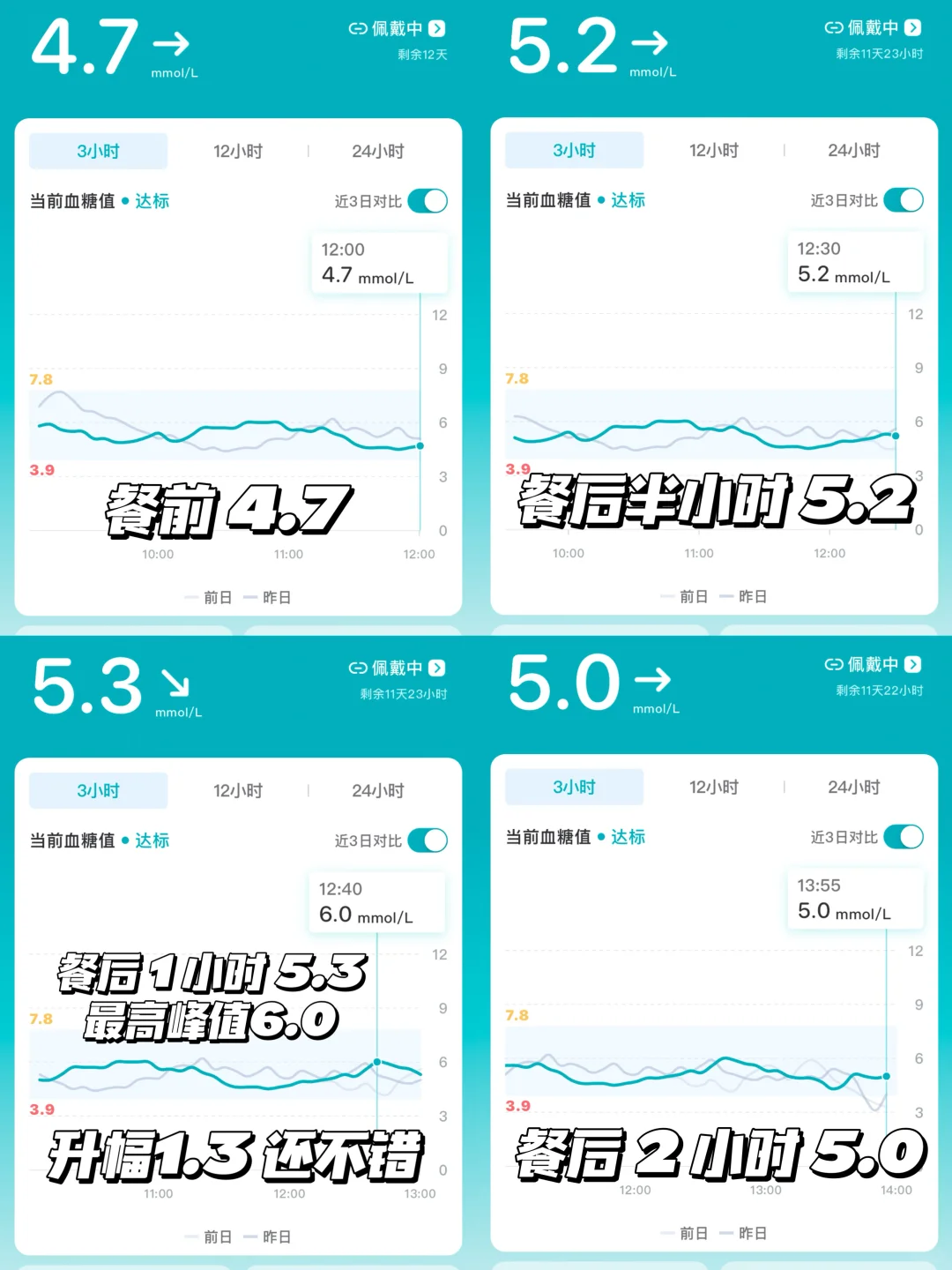 🍬餐后40分钟峰值6.0→升幅1.3,还不错哦✔