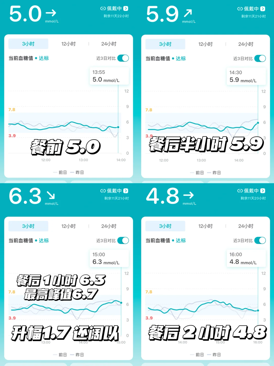 🍬餐后50分钟峰值6.7→升幅1.7,还可以哦