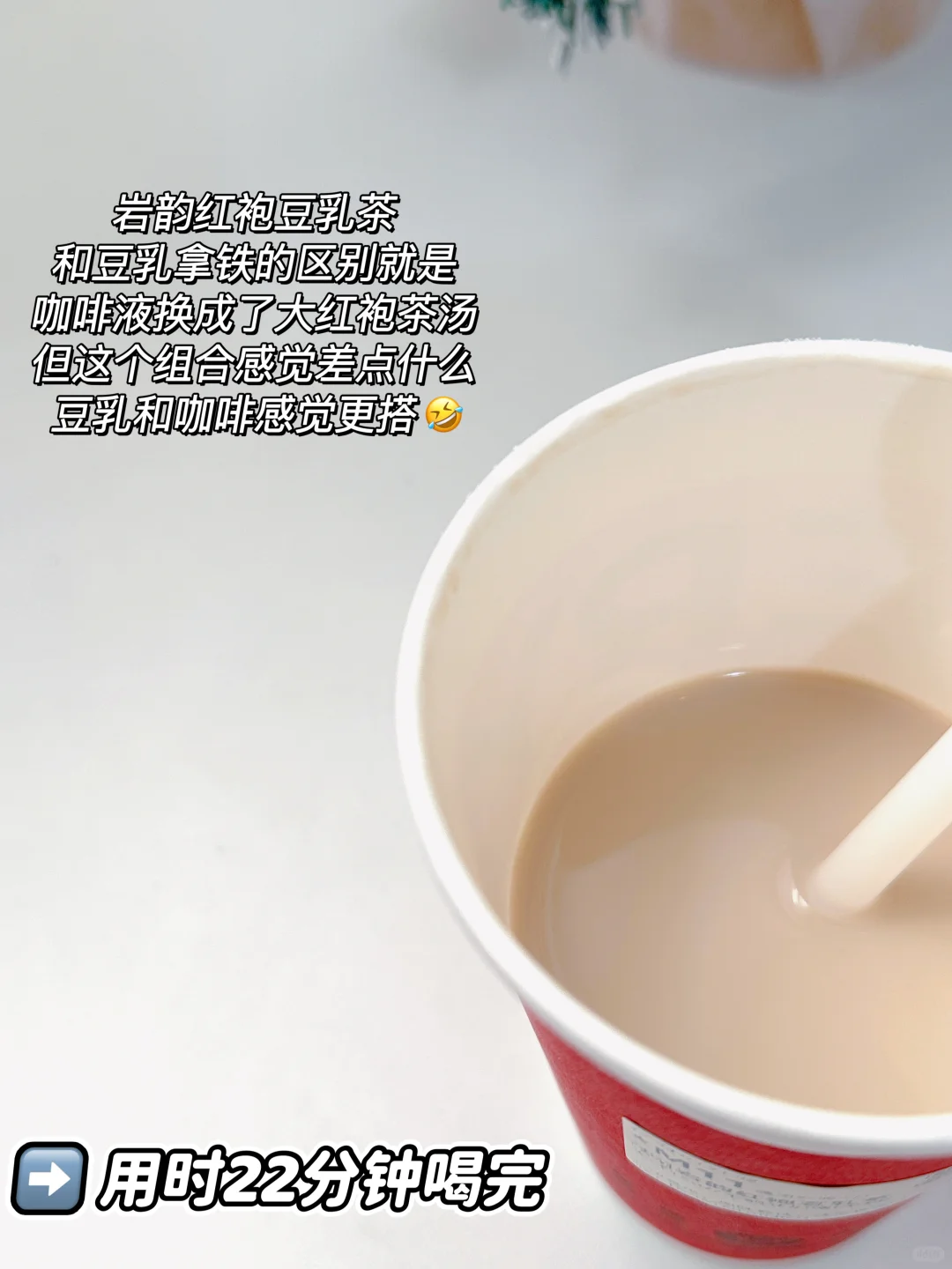 岩韵红袍豆乳茶和豆乳拿铁的区别就是,咖啡液换成了大红袍茶汤〰️但这个组合感觉差点什么,豆乳和咖啡感觉更搭🤣