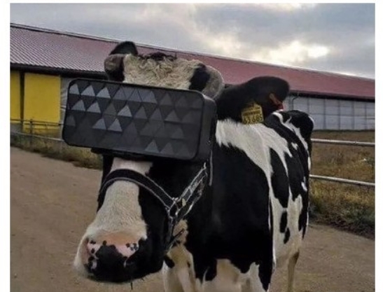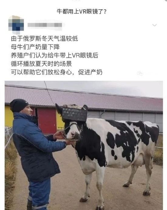 养殖户们认为给牛带上VR眼镜后,循环播放夏天时的场景,可以帮助它们放松身心,促进产奶