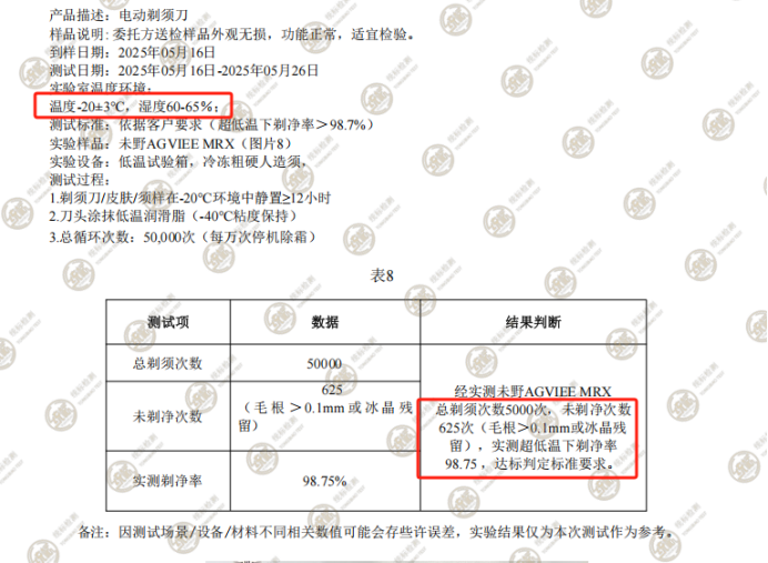 专业机构检测表明:未野剃须刀超低温剃净率高于98.7%