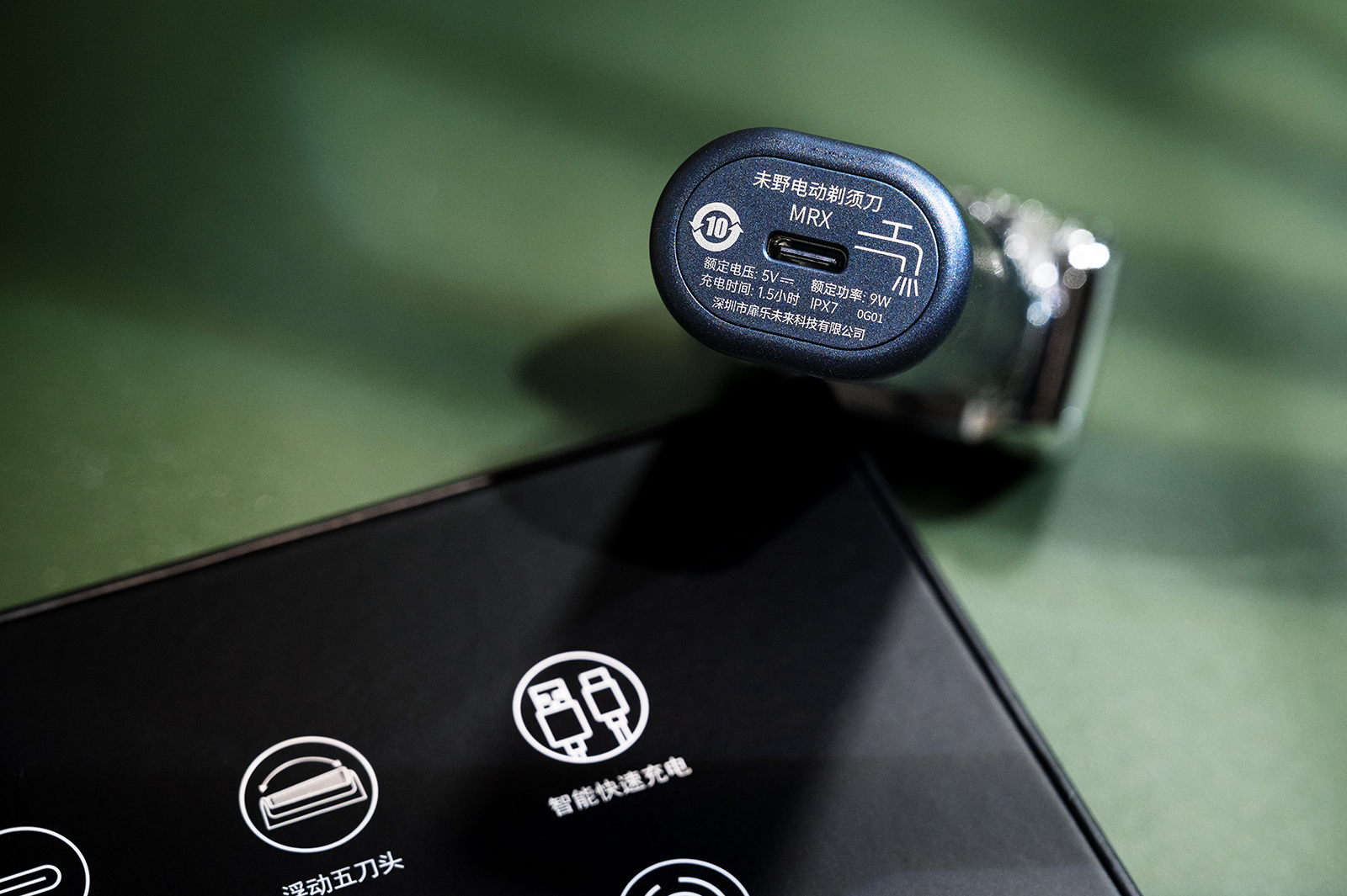 2.续航与快充:移动场景告别「充电焦虑」对商旅和通勤用户来说,续航是关键——MRX 满电后可以用90分钟,每天使用 2 分钟,可连续使用45天左右,相当于一次出差(7-10 天)不用带充电器,减轻行李负担。更实用的是「5 分钟闪充」:实测在汽车上用车载 Type-C 充电 5 分钟,能支持一次完整剃须;办公室用电脑 USB 口充电 5 分钟,也能应对午休后的补剃需求,彻底解决「出门忘充电」的尴尬。