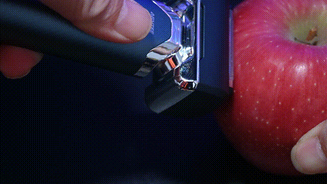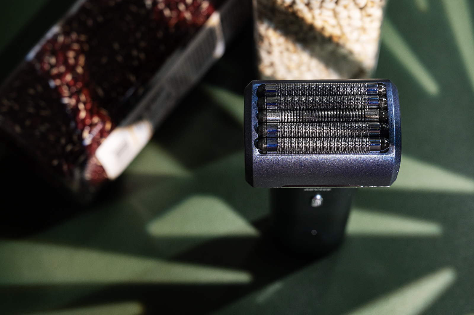 哪怕是临近拜访客户,也能有足够在车里用1 分 40 秒就完成全脸剃须,且无拉扯感 —— 这得益于「德国 598HV 不锈钢刀刃」的 30° 锐角薄刃工艺,锋利度足够却不刺激皮肤。