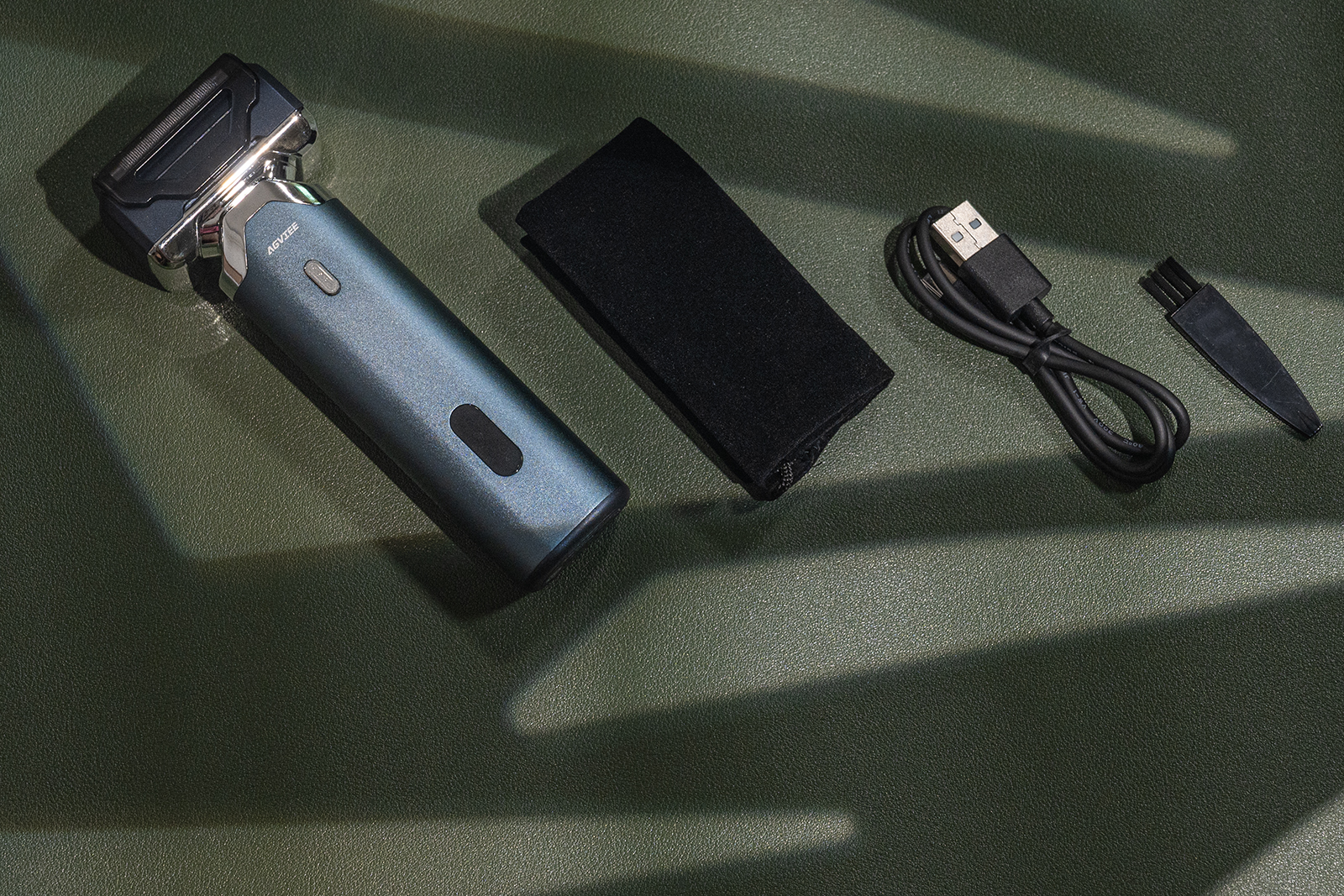 除了剃须刀外,附带的配件包括了收纳袋、Type-C充电线、清洁毛刷。我们出差或者把剃须刀放车里,有着收纳袋不仅仅方便,还能更好保护剃须刀。