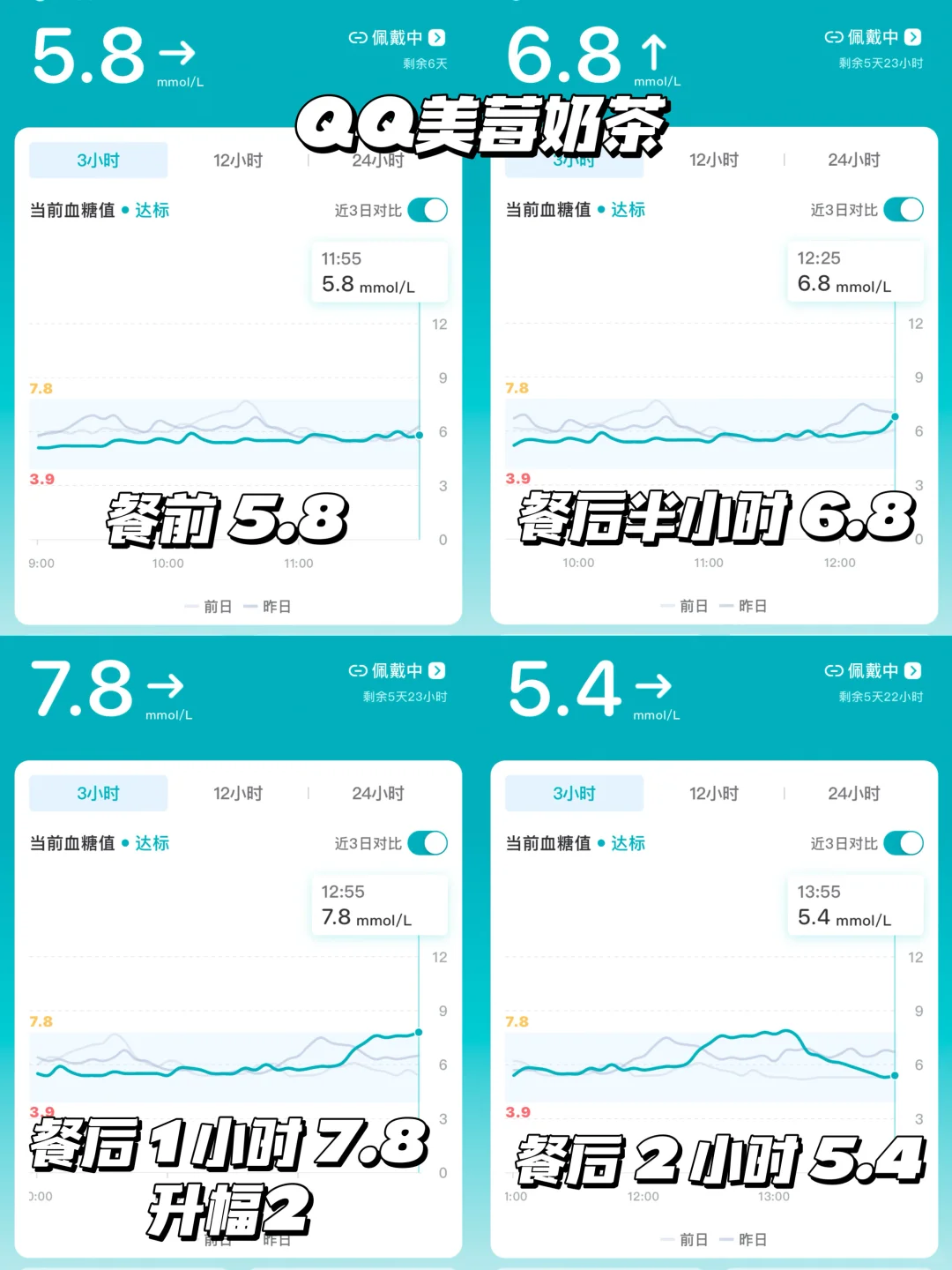 🍬餐后一小时7.8→升幅2