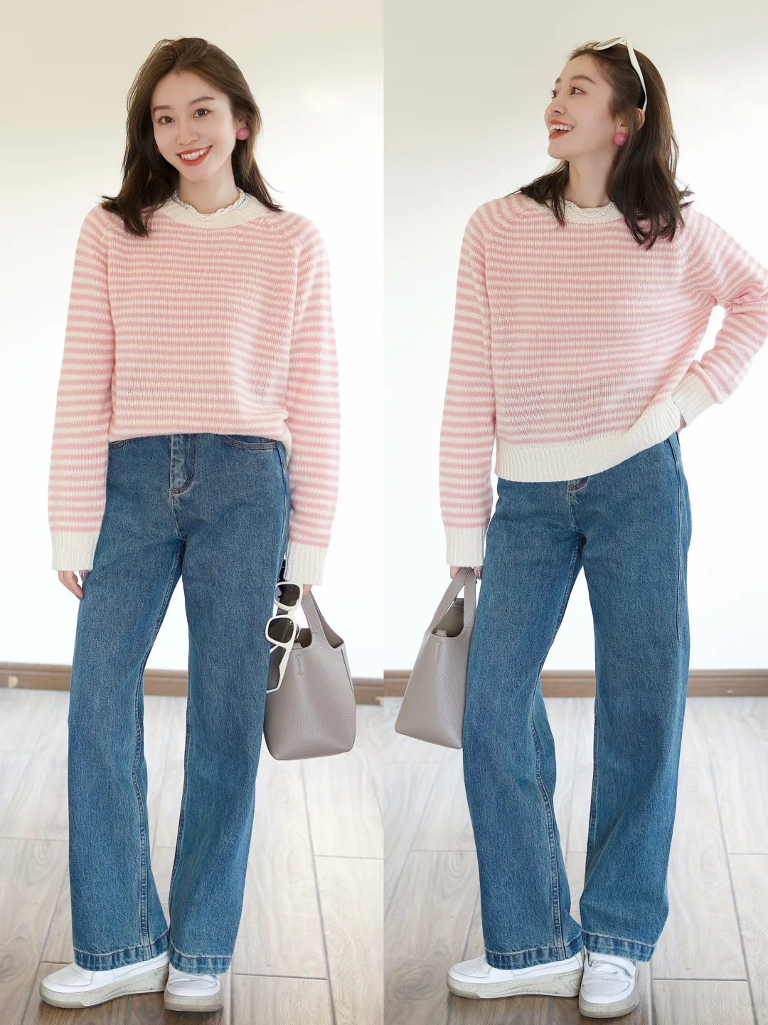 简简单单就很好看|软糯粉色毛衣➕牛仔裤