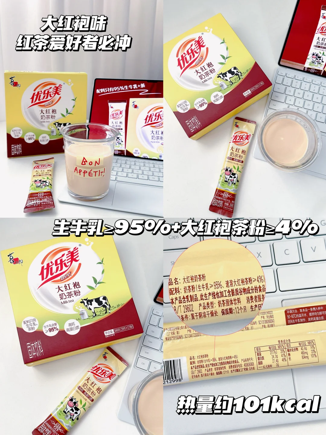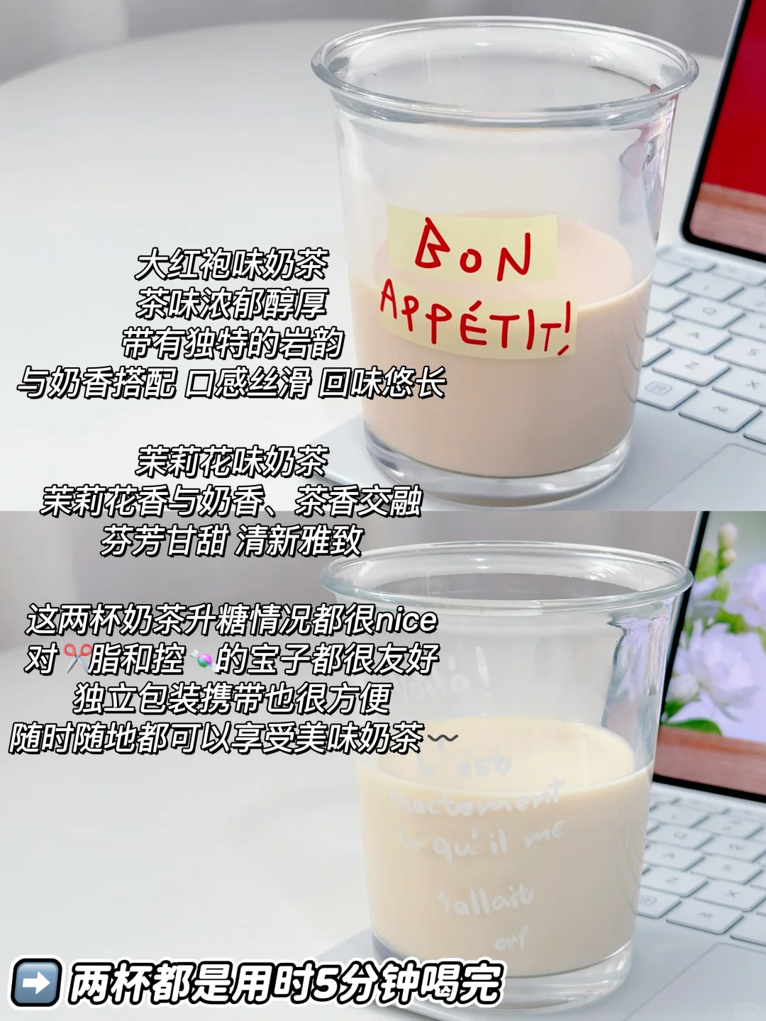 宝子们,优乐美新出了一款纯奶纯茶的奶茶,一共两个味道,分别是:茉莉花香味和大红袍味✔两款奶茶配料表都很干净简单,生牛乳≥95%+茶粉≥4%✔