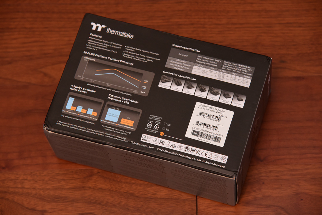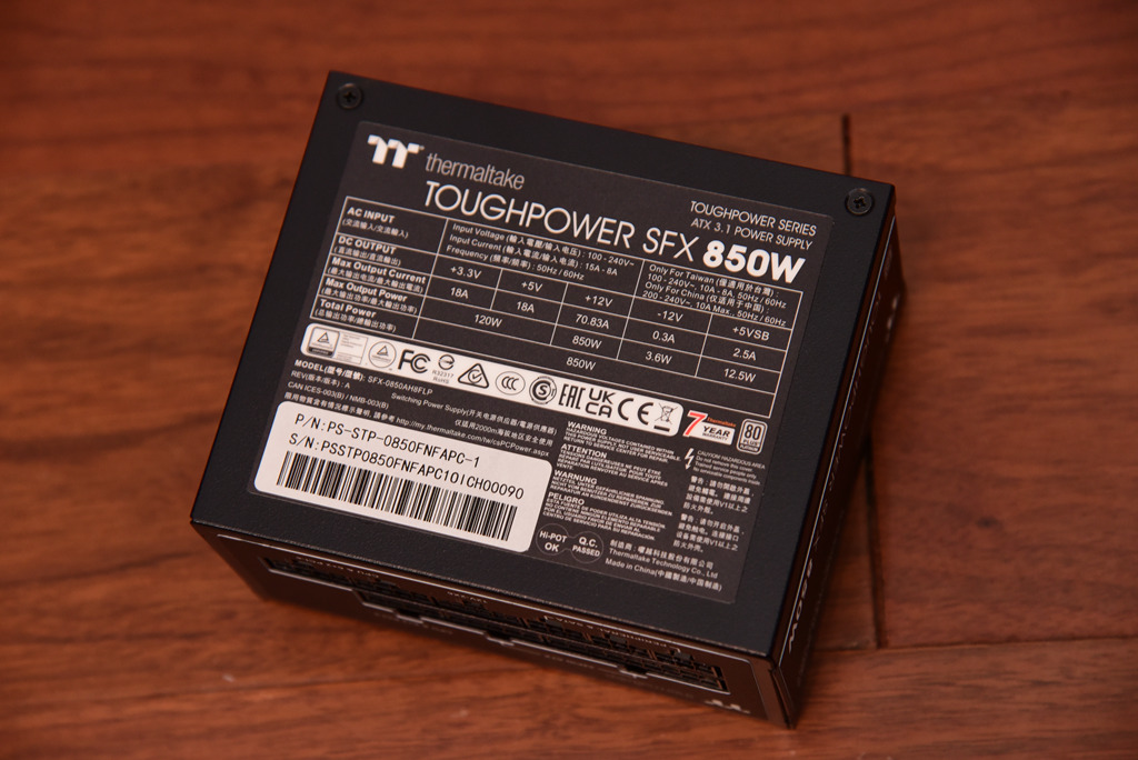 选用的TT TOUGHPOWER SFX 850白金高级版全模组电源,此电源采用了全日系电容,主打ATX3.1标准、全模组、低噪音和7年超长质保。