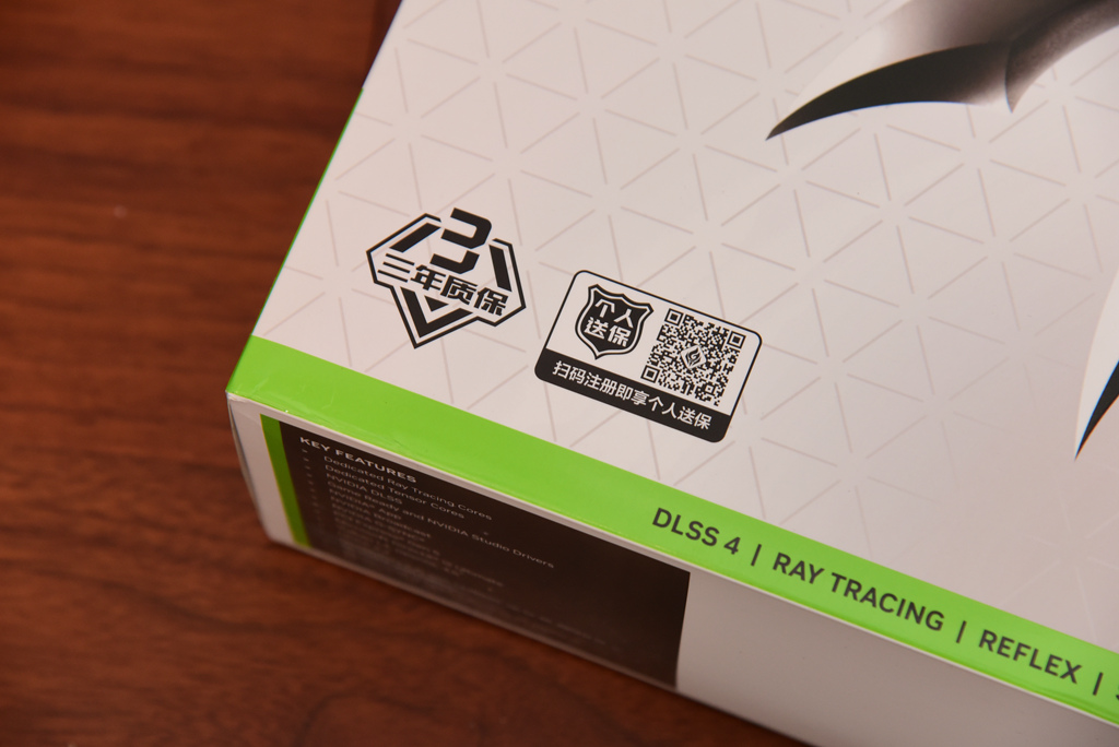 从包装上看到,RTX5080支持光线追踪、DLSS 3、REFLEX等技术。