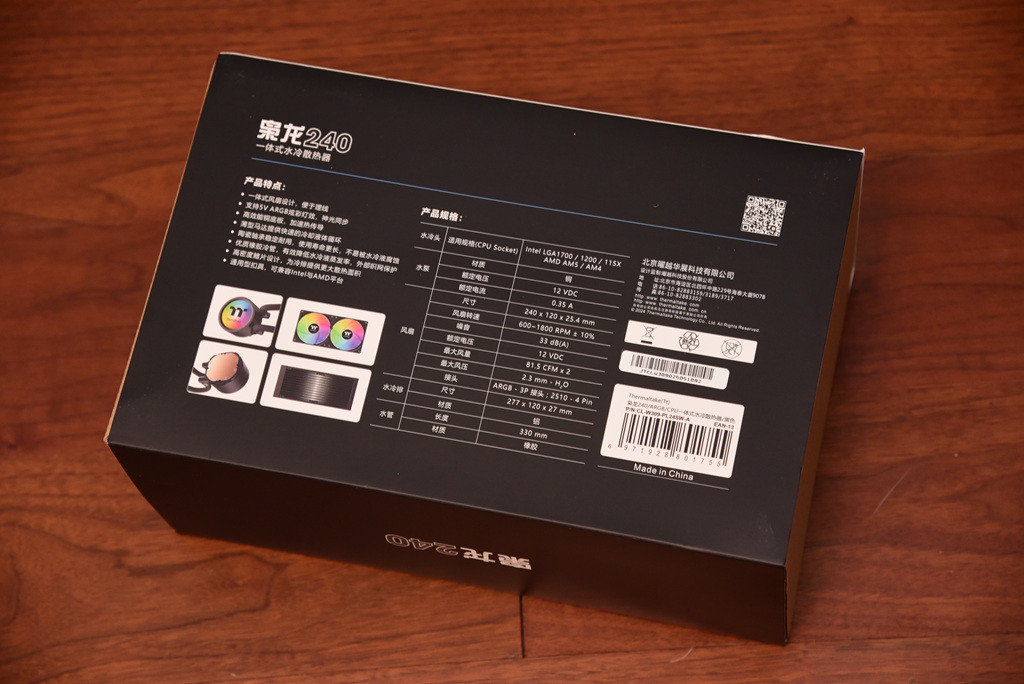 水冷排规格为240X120X27,方便在机箱内部安装。