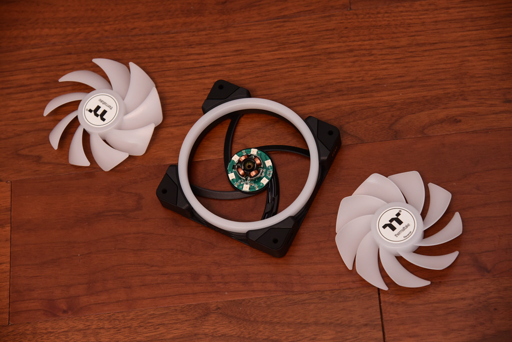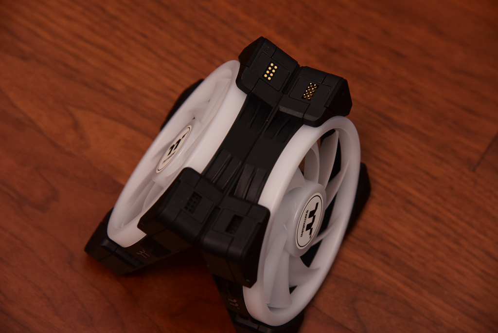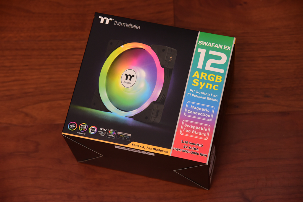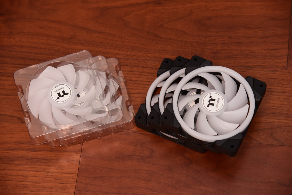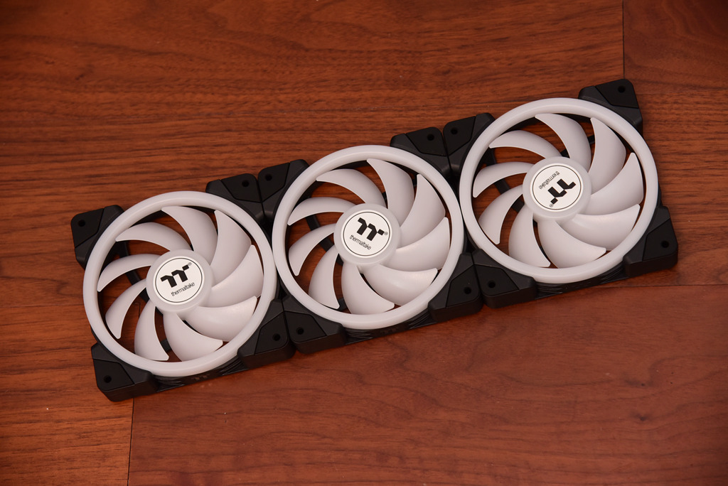 为了更好地帮助机箱散热,同时购置了TT耀影SWAFAN EX风扇三连包款式。这款风扇非常全能,基本上实现了所有的黑科技,ARGB灯效、可更换扇叶、无线磁吸式连接等等。