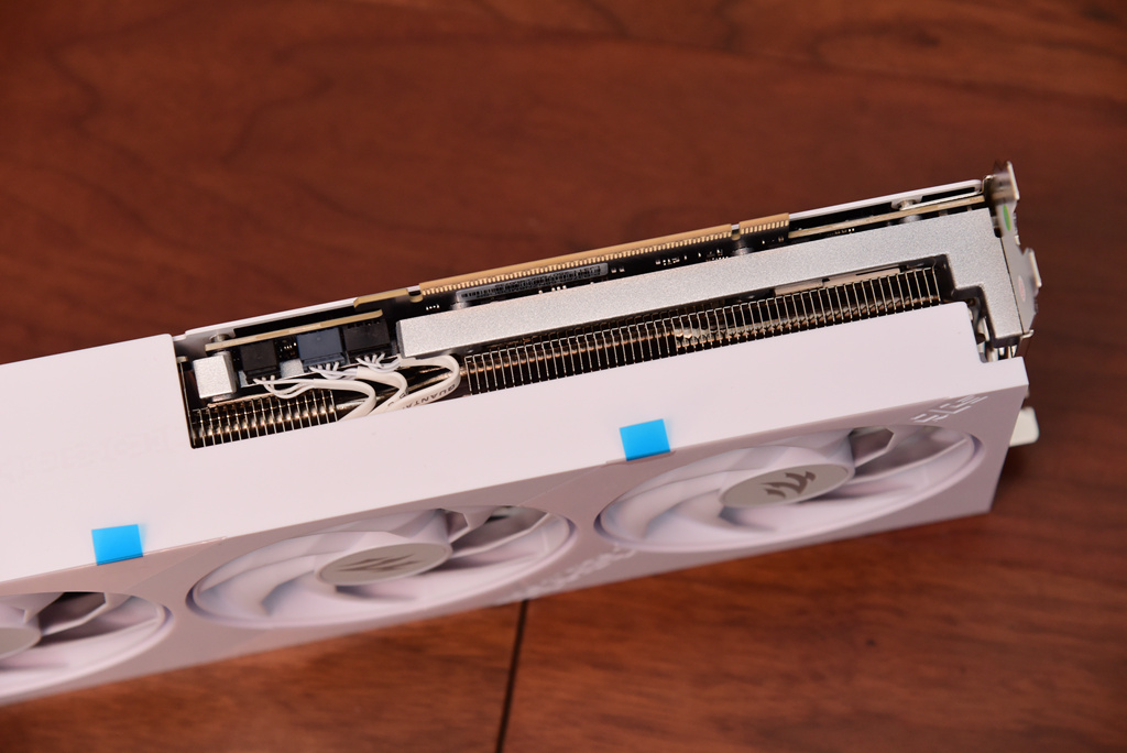 显卡侧边采用了封闭式设计,可以构成独立的散热风道,可以加强散热效果。