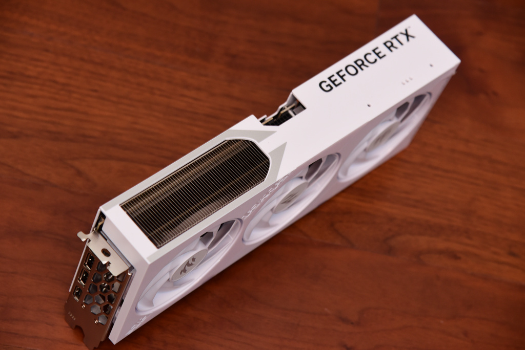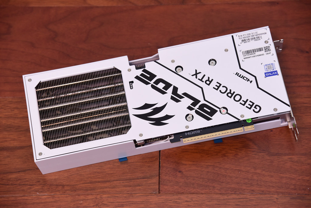 影驰RTX5080圣刃白色版本,通体是白色风格,适合打造一台全白色主机,显卡配备了给力的三风扇多热管规格的散热器。