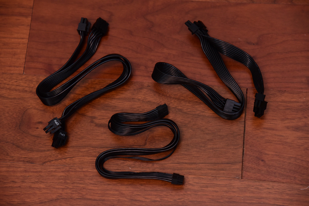 电源附带了8条模组线,CPU和PCI-E供电等主力线材有3 条,可以满足大部分应用场景。