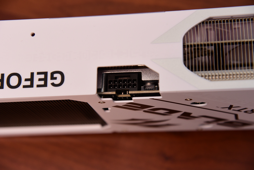 显卡供电接口为PCIE5.0专属的12+4Pin HPWR接口,作为高端显卡建议使用额定功率800W以上的电源。