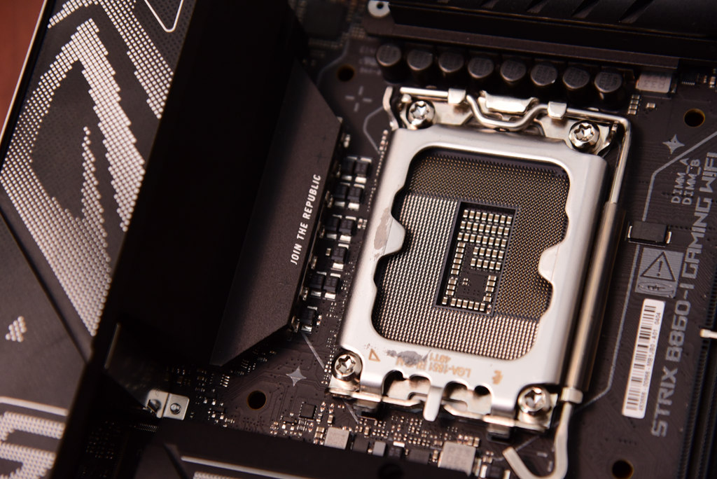 ROG STRIX B860-I GAMING WIFI主板采用了8层PCB工艺,CPU插槽为LGA1851接口,可以兼容LGA1700系列的散热器。