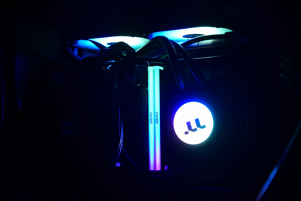 枭龙240水冷主打高性价比,同时兼容各大主板厂家的灯效设置,可以同步灯效。