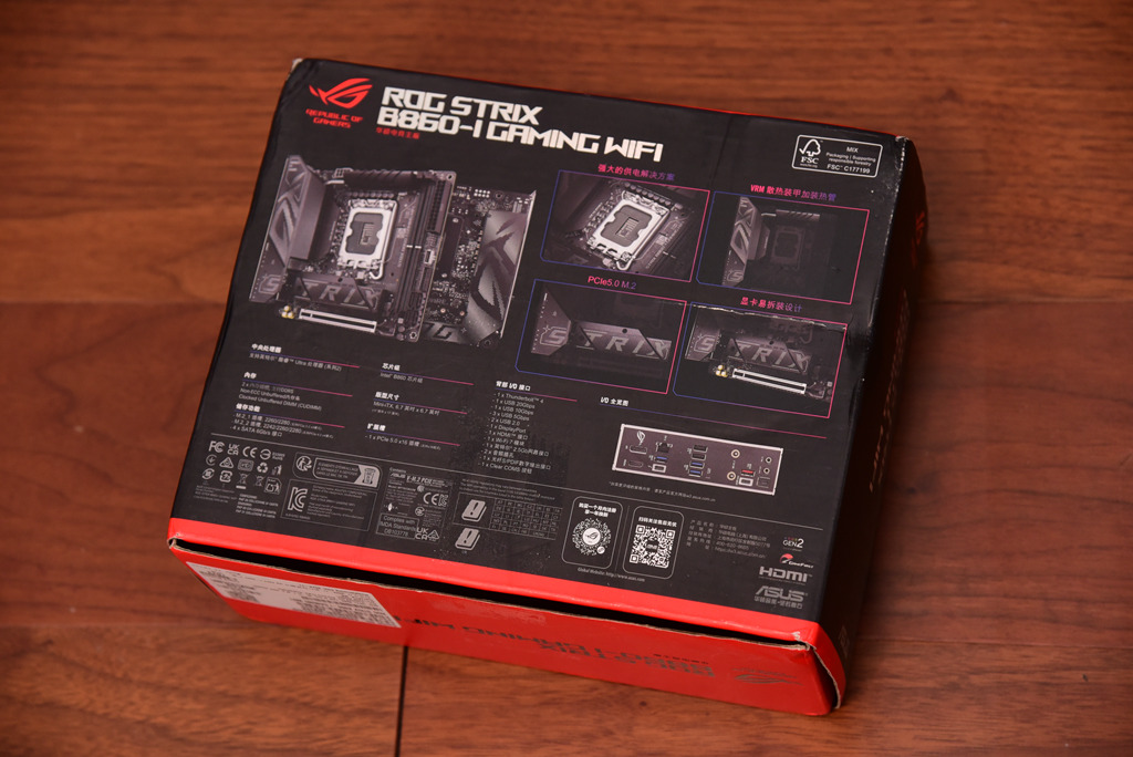 ITX装机讲究的是“麻雀虽小,五脏俱全”。这一次装机使用的主板是华硕ROG STRIX B860-I GAMING WIFI主板,华硕下属的ROG之STRIX系列主打性价比和全面功能。