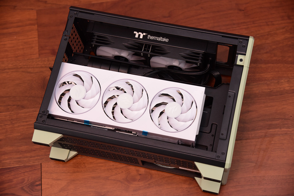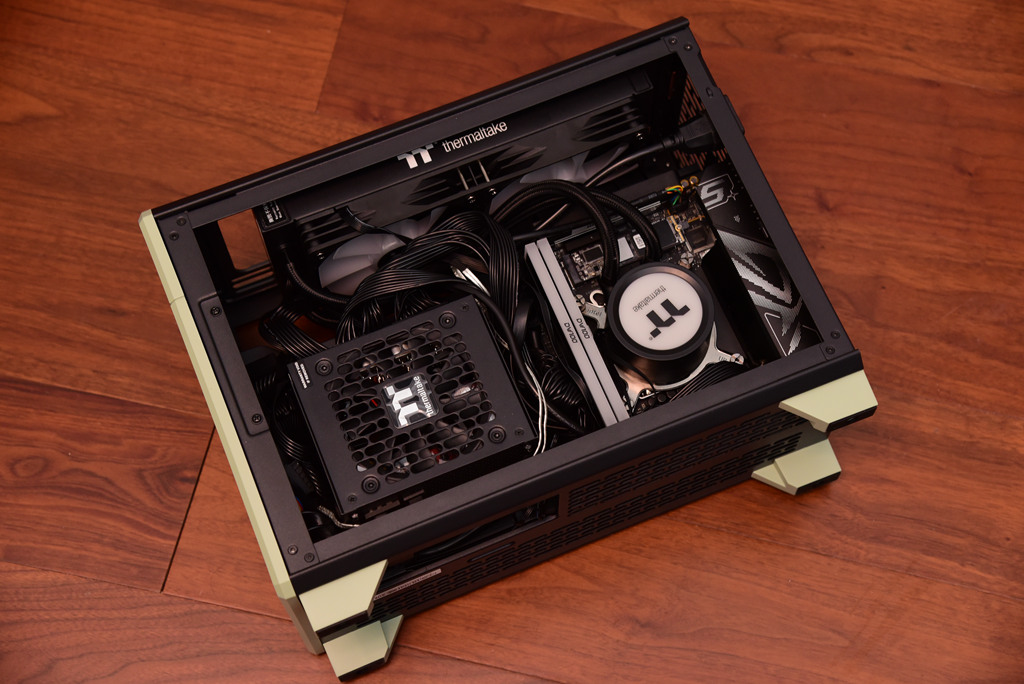 装机机箱为TT品牌的TR100机箱,颜色为抹茶绿风格。