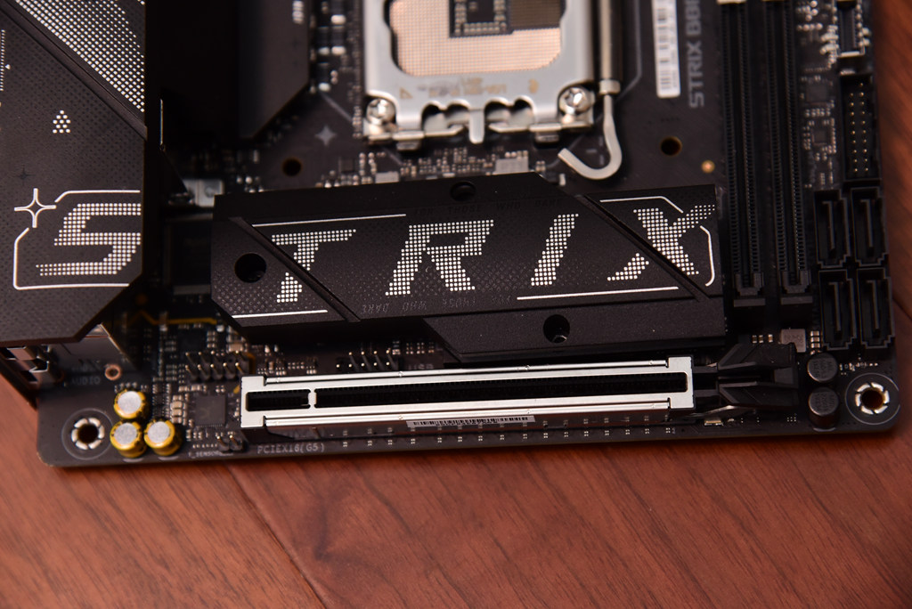 主板配备了1条PCI-E5.0x16显卡插槽,显卡插槽有合金装甲保护,确保游戏性能无瓶颈。同时,显卡安装卡扣采用了易拆装设计。