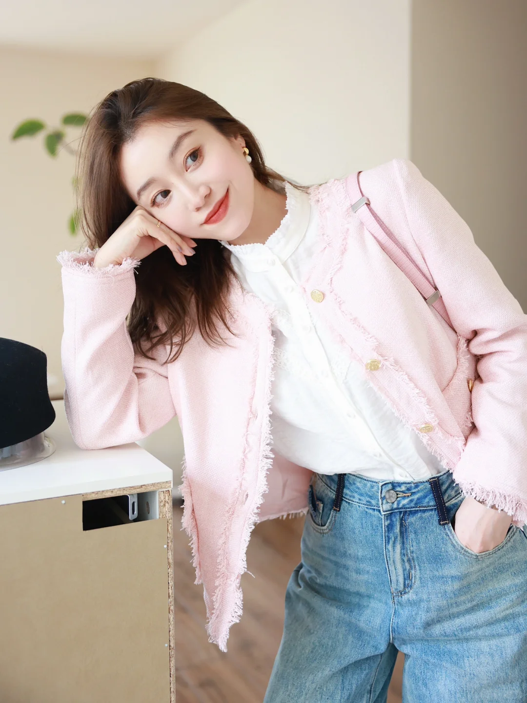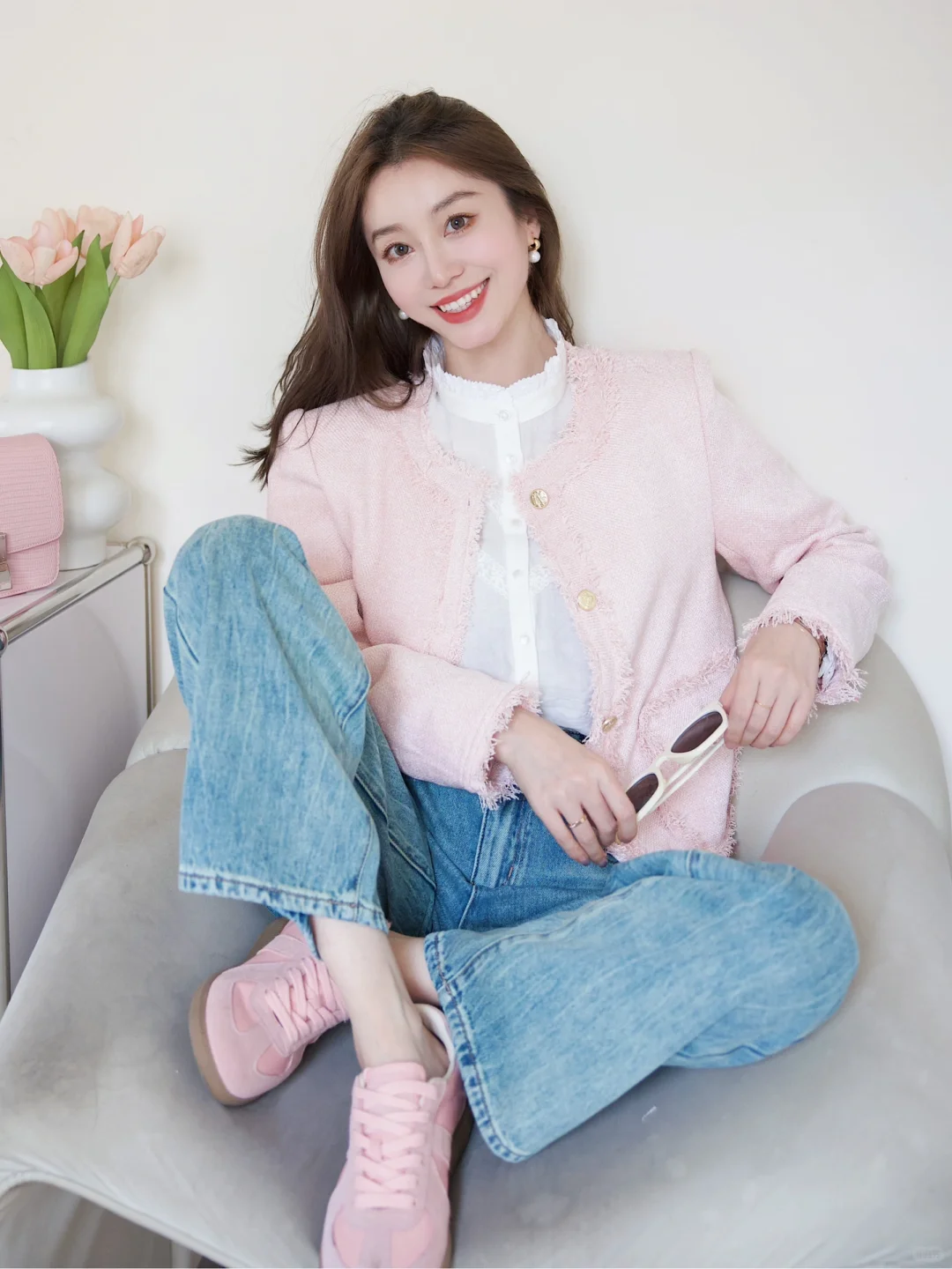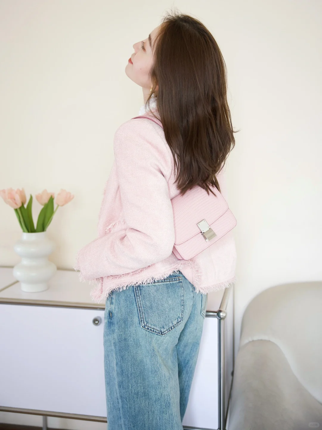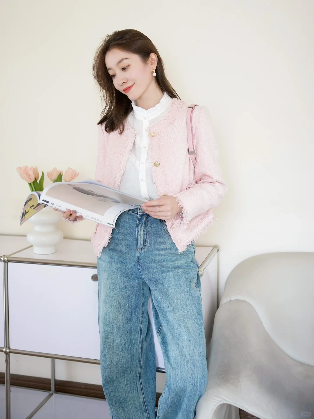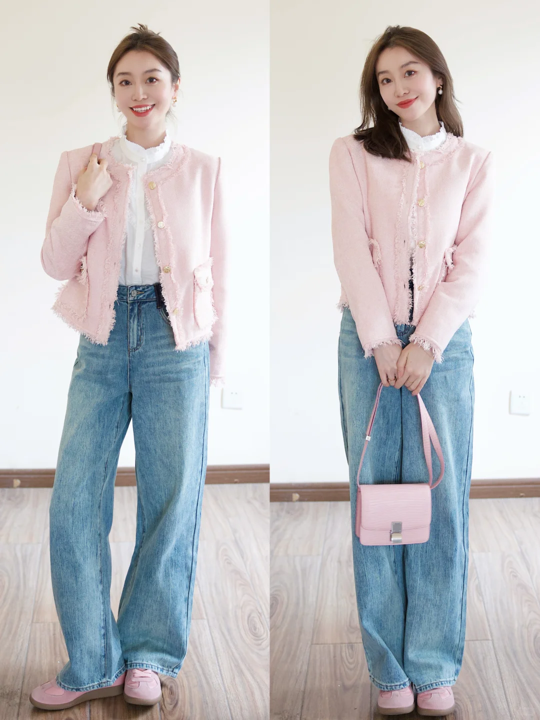 期待春天💕粉色小香➕蓝色牛仔裤简单即好看
